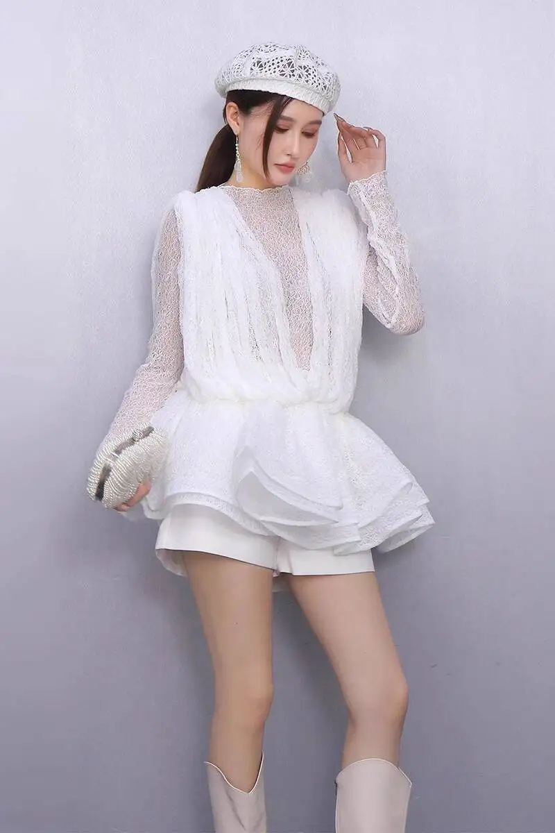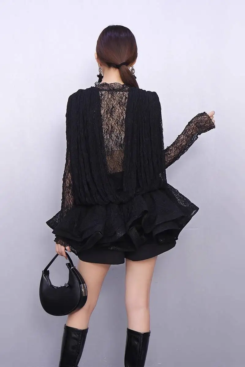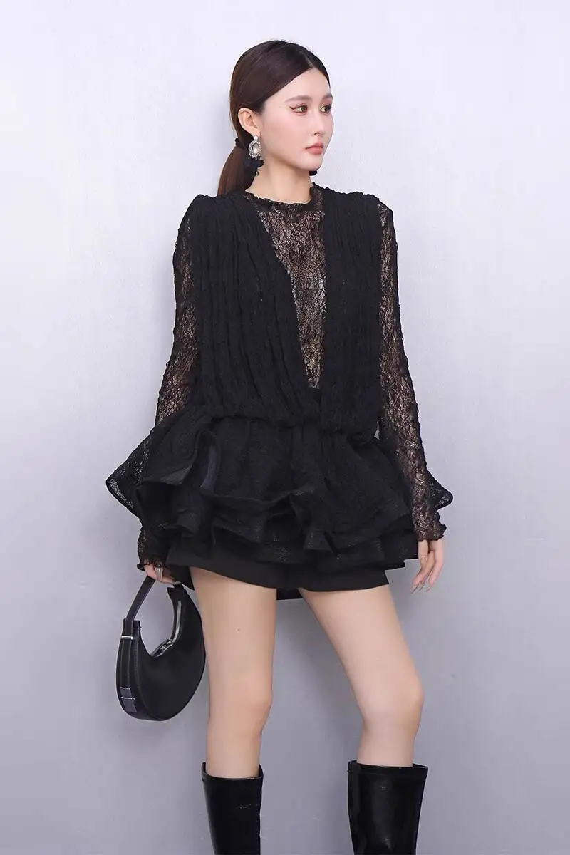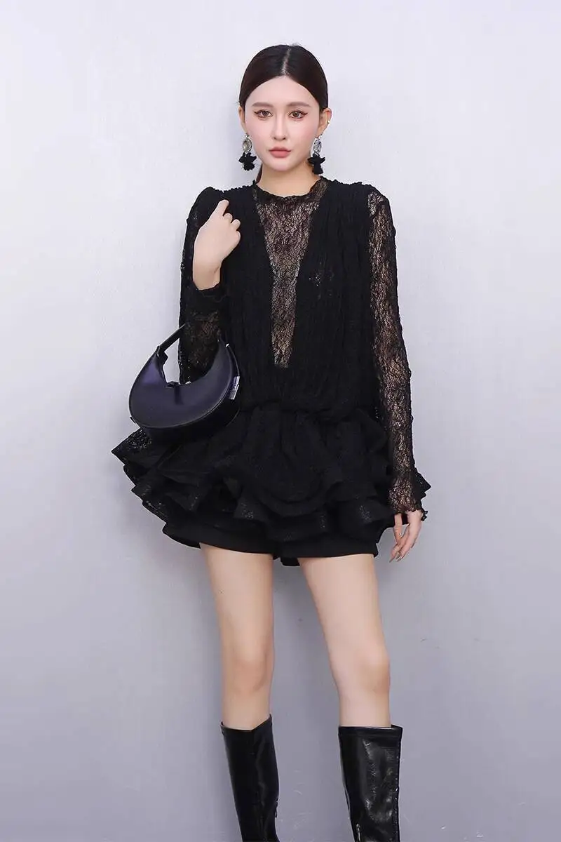 2025 Autumn New Women's Set Loose 3D Lace Hem Top Two Piece Fashion Elegant