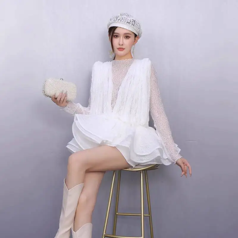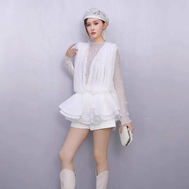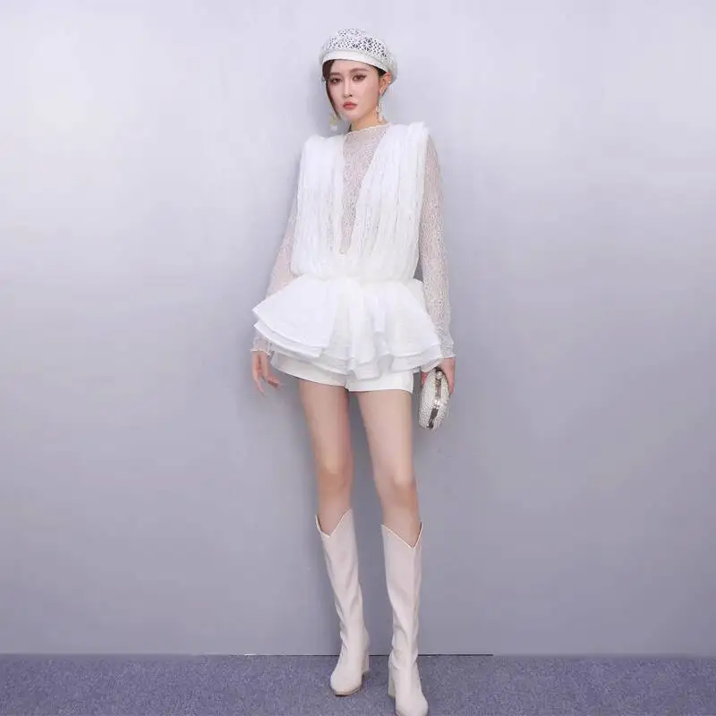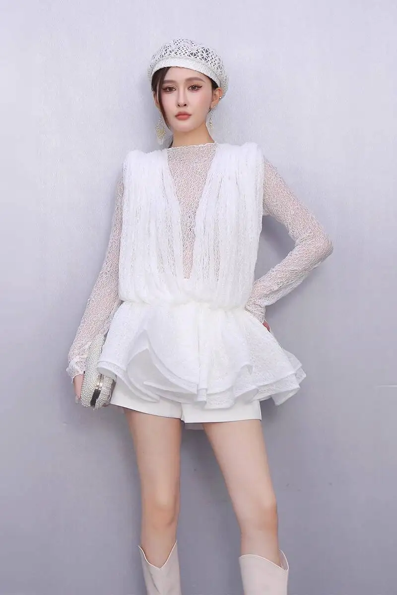 2025 Autumn New Women's Set Loose 3D Lace Hem Top Two Piece Fashion Elegant
