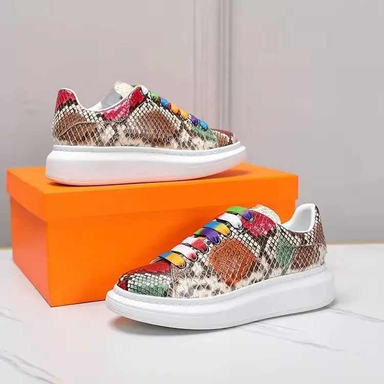 2025 New Arrival Fashion Snake Skin Casual Shoes – Unisex Genuine Leather Sneakers