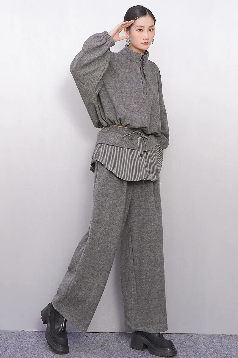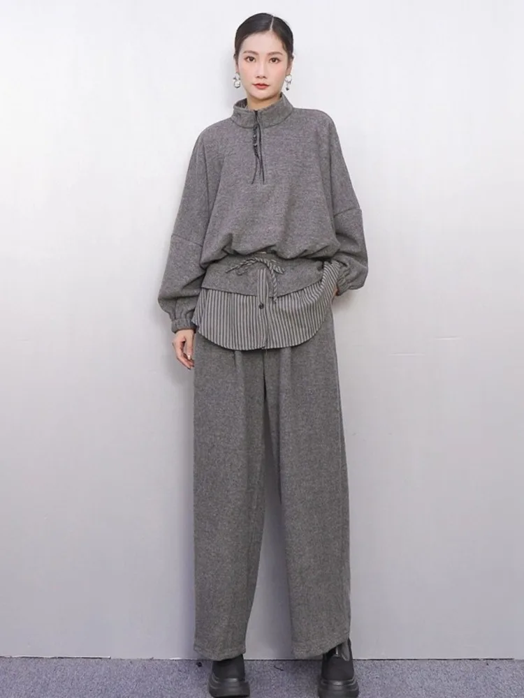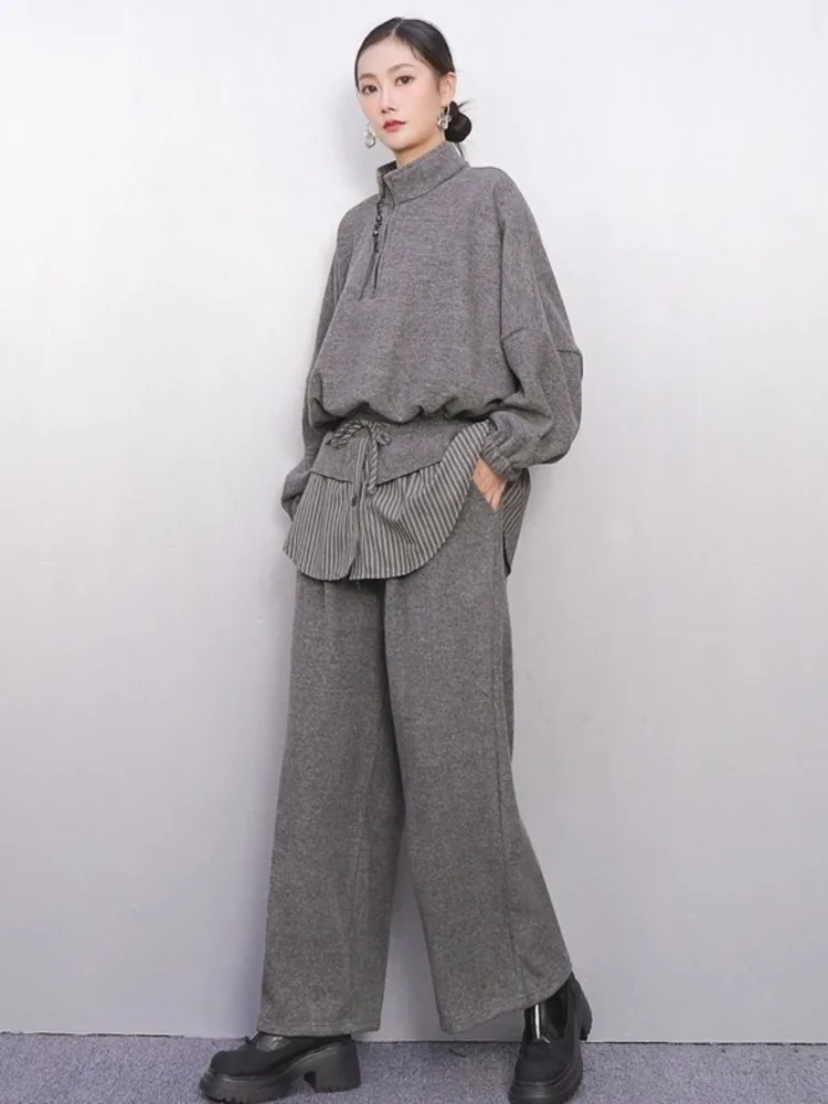 2025 New Autumn Winter Stand Collar Full Sleeve Zip-Up Sweatshirt & Pants Set