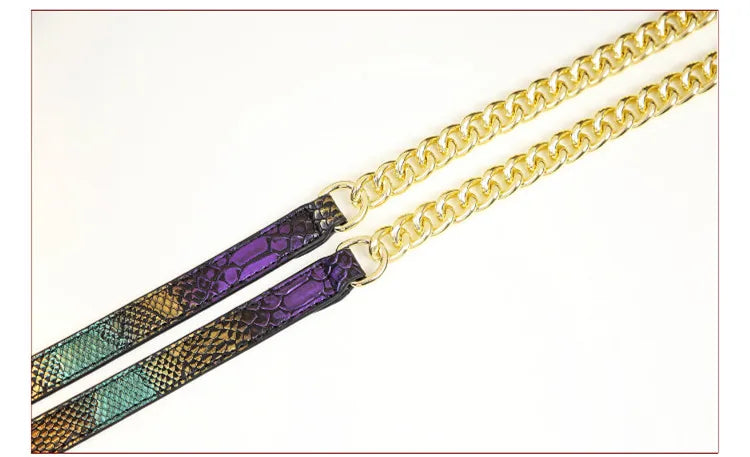 🐍 Serpentine Chain Strap – Eye-catching metallic snake-link chain adds a bold, edgy detail while remaining comfortable over the shoulder