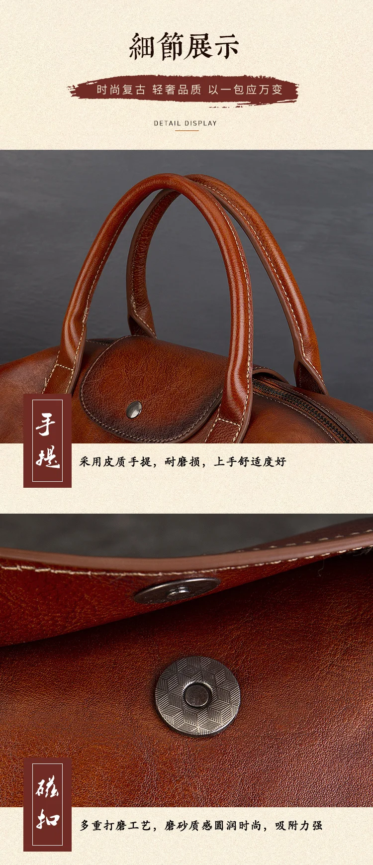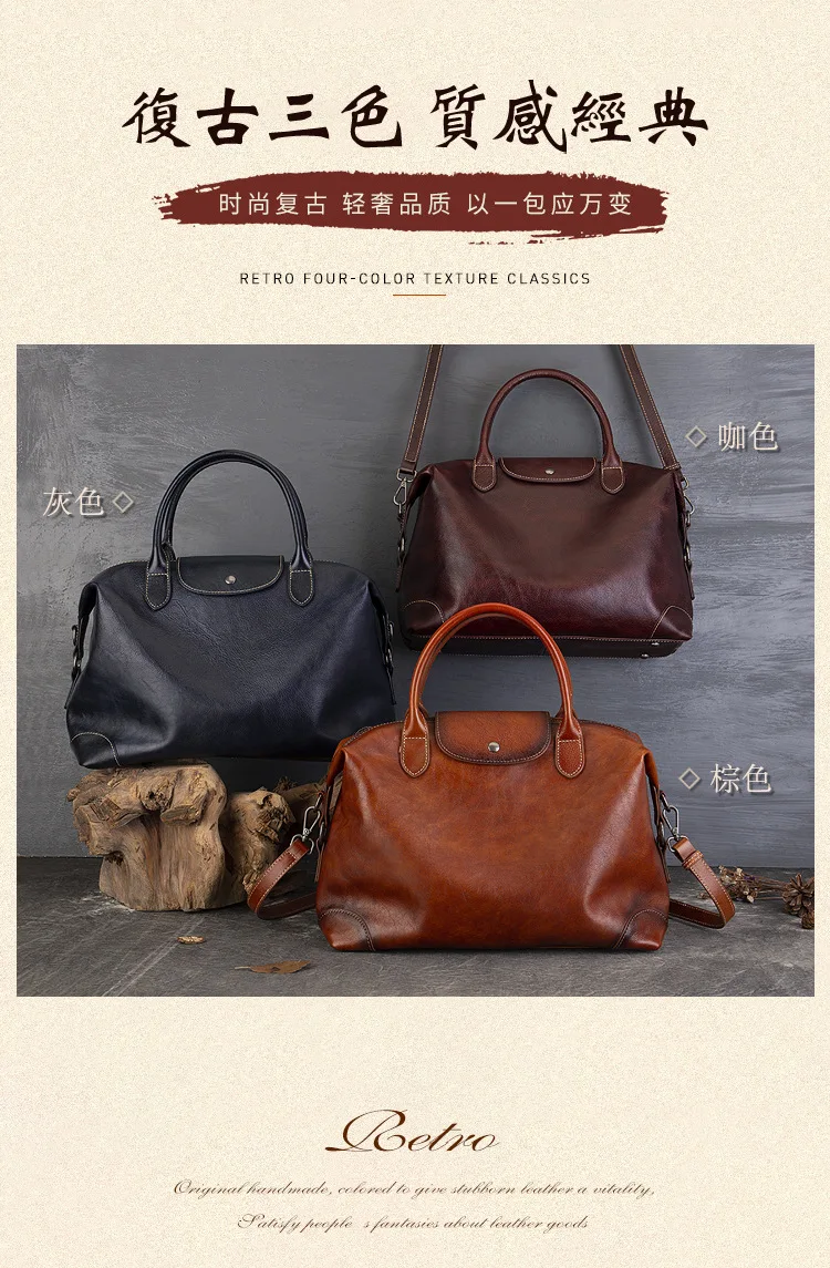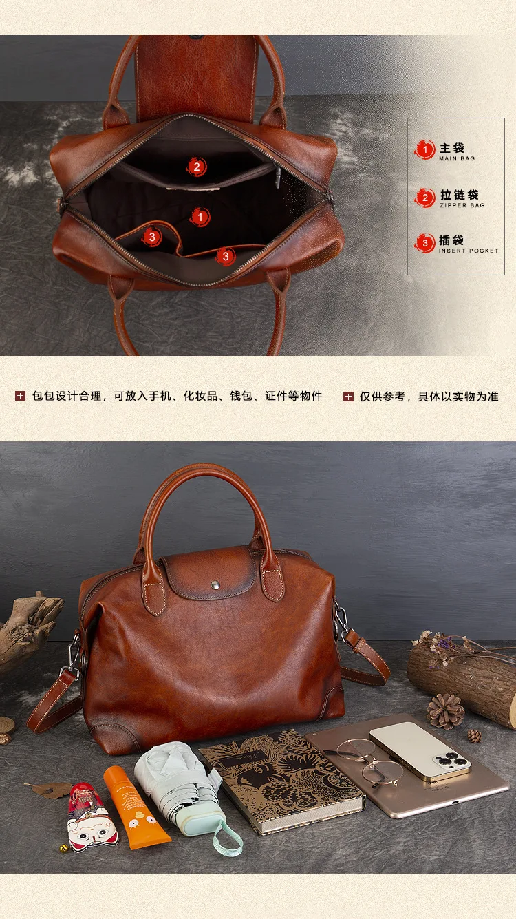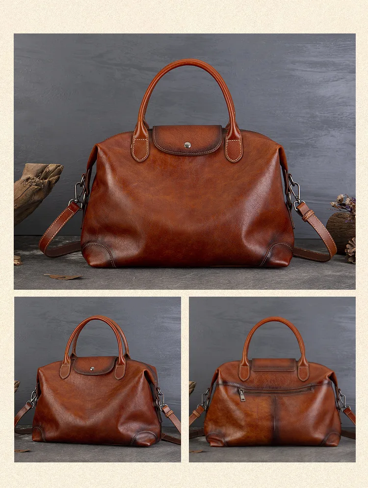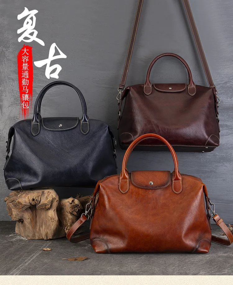 2025 New Retro Genuine Leather Women's Bag Large Capacity Tote Bag