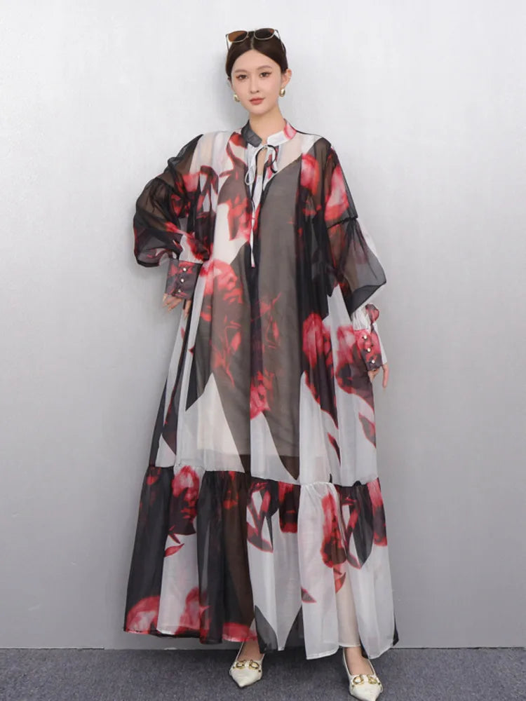 2025, Summer, New, O Neck, Long, Sleeve, Loose, Mid, Long, Styles, Girdling, Waist, Dress, Women,