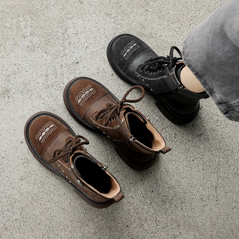 Highlighted by intricate ethnic-inspired embroidery on the vamp and sides, these ankle boots bring a unique artisanal touch to your cold-weather wardrobe. The chunky yet stable block heel (approx. 2.8 inches / 7cm) provides all-day support, making them ideal for walking through city streets or enjoying a cozy autumn day.