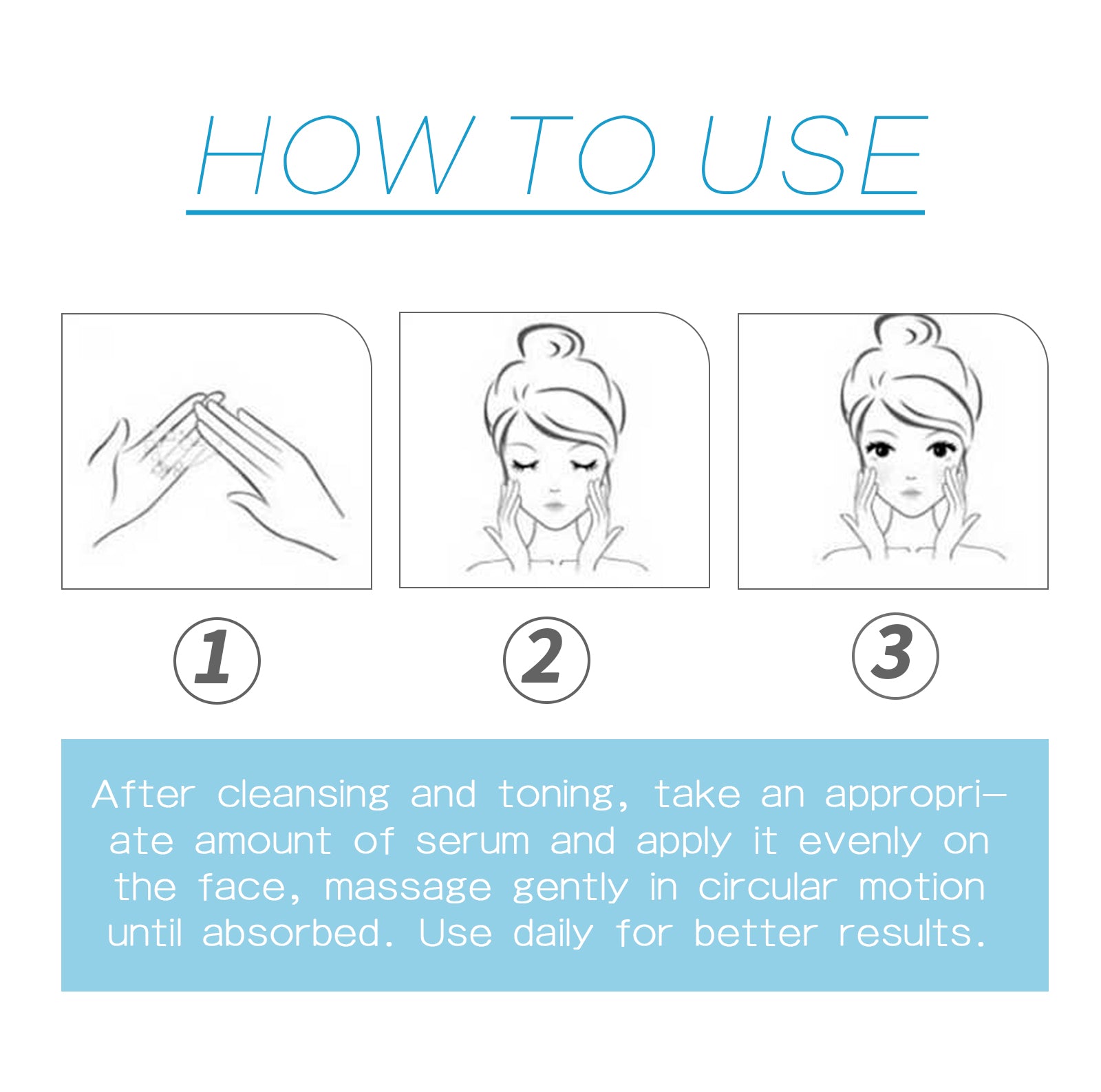 After cleansing and toning, apply 2–3 drops to face and neck, focusing on areas with fine lines (forehead, eyes, mouth). Gently press and pat—do not rub aggressively. Use morning and night. Follow with SPF during the day.