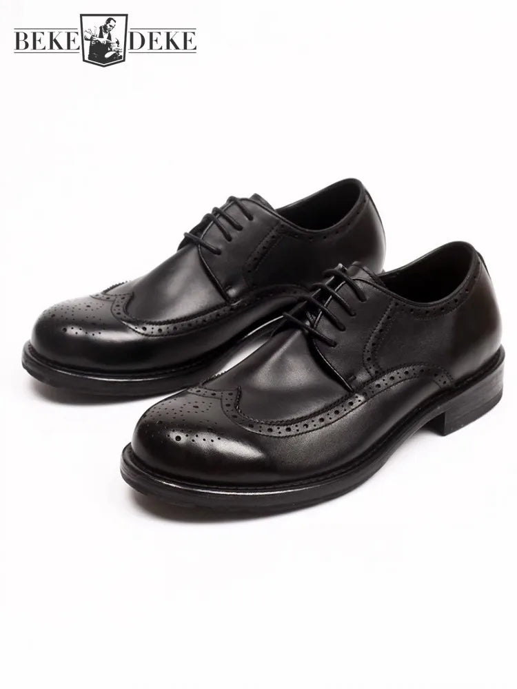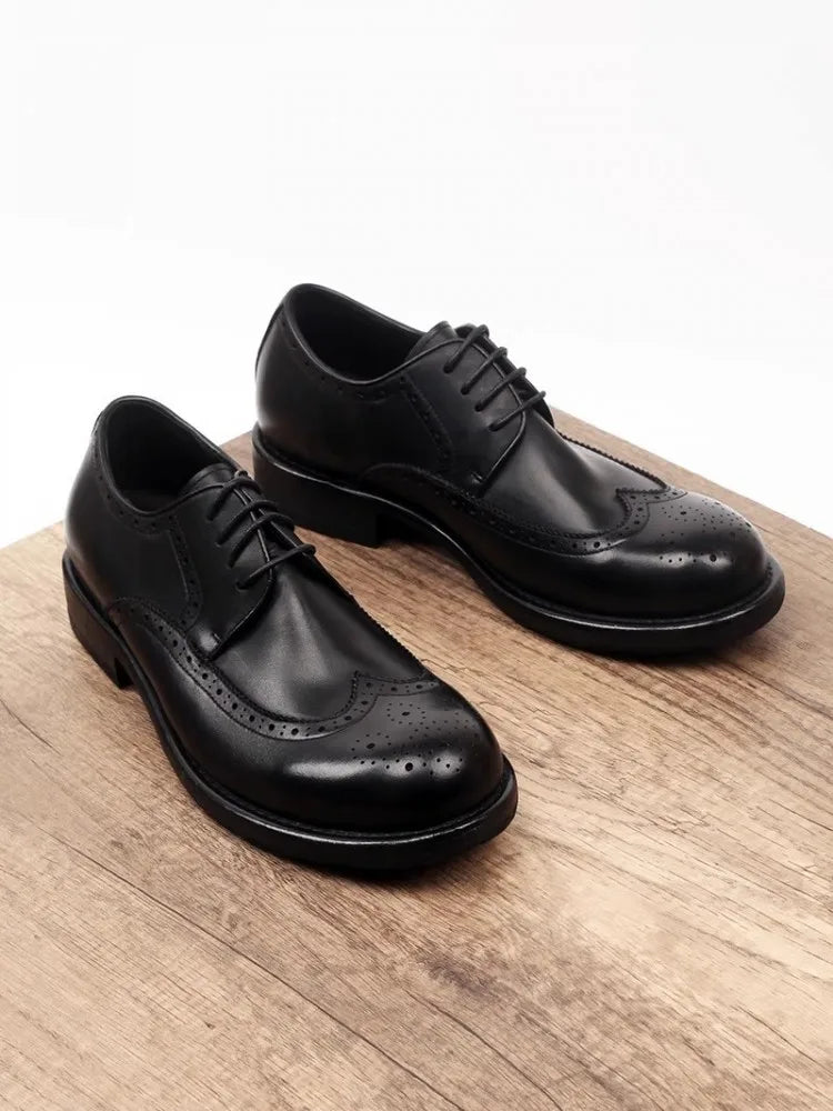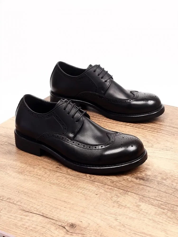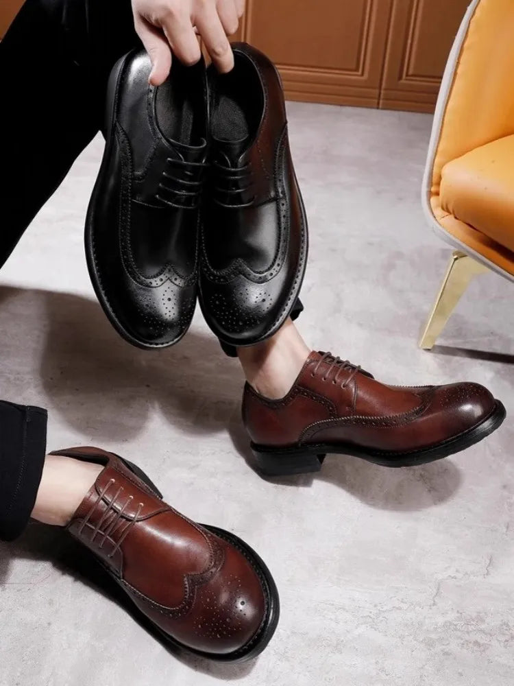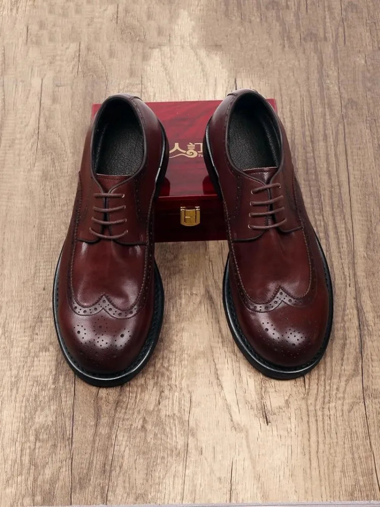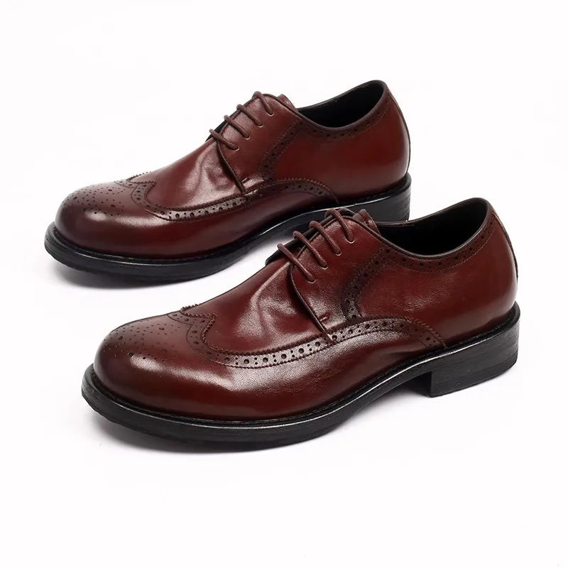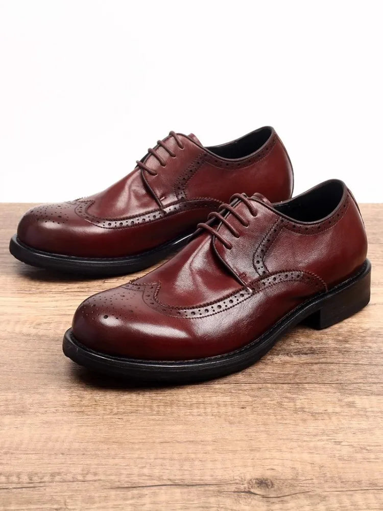 Elevate your formal style with our Vintage Genuine Leather Brogue Shoes for Men, designed with intricate wingtip perforations and classic lace-up closure. These handcrafted derby shoes exude a rich character, offering a polished finish that speaks of timeless elegance and refined taste. Whether you're headed to the office or a high-stakes meeting, these shoes make an unforgettable impression with their vintage charm and sharp detailing. Ideal for modern professionals who value both aesthetics and craftsmanship, these shoes seamlessly bridge classic fashion with contemporary flair.