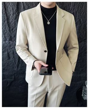 Shop our Men's Business Casual Two-Button Suit Sets. Enjoy a sleek, slim fit design with solid colors, perfect for formal occasions and professional settings.