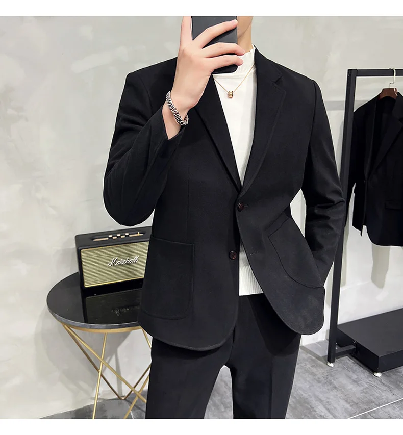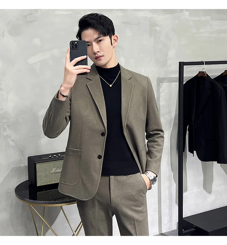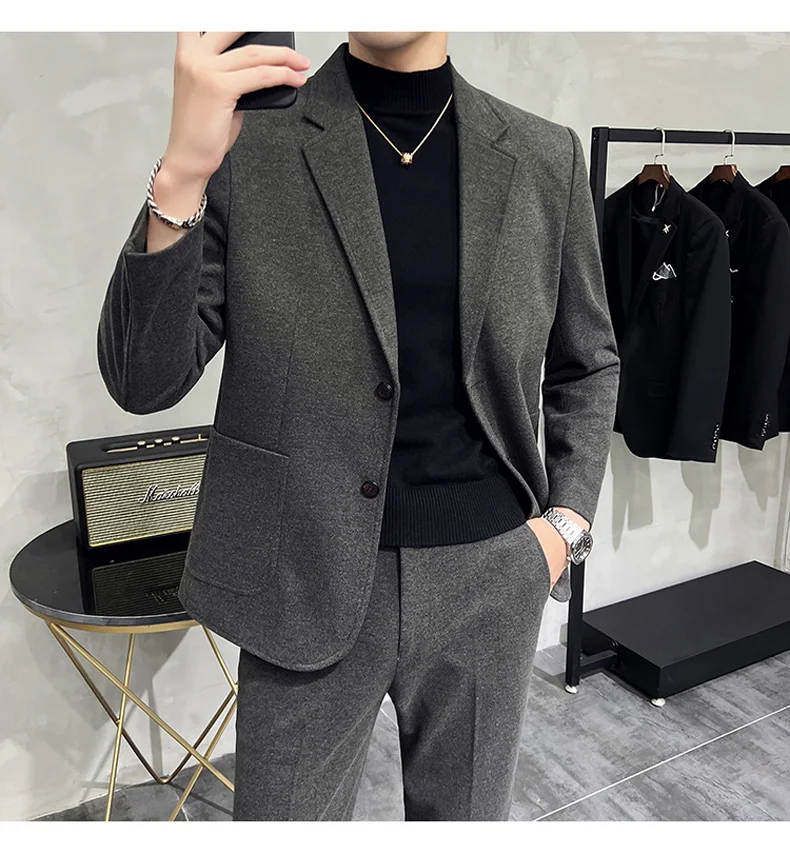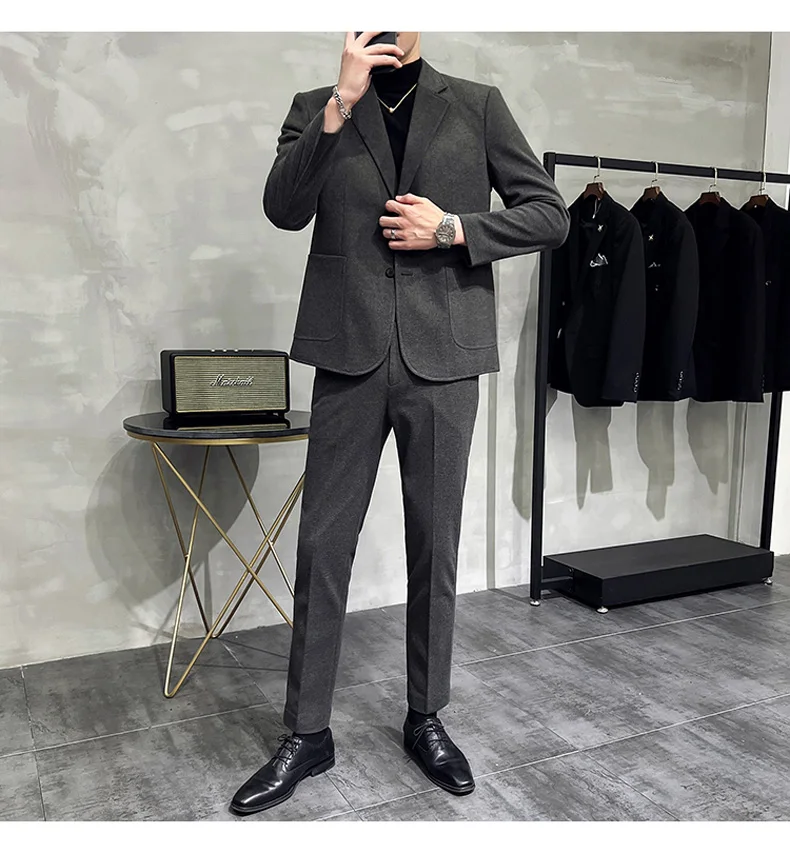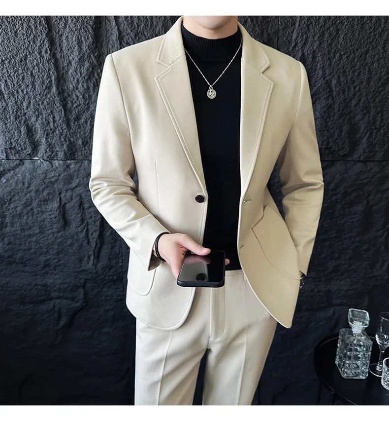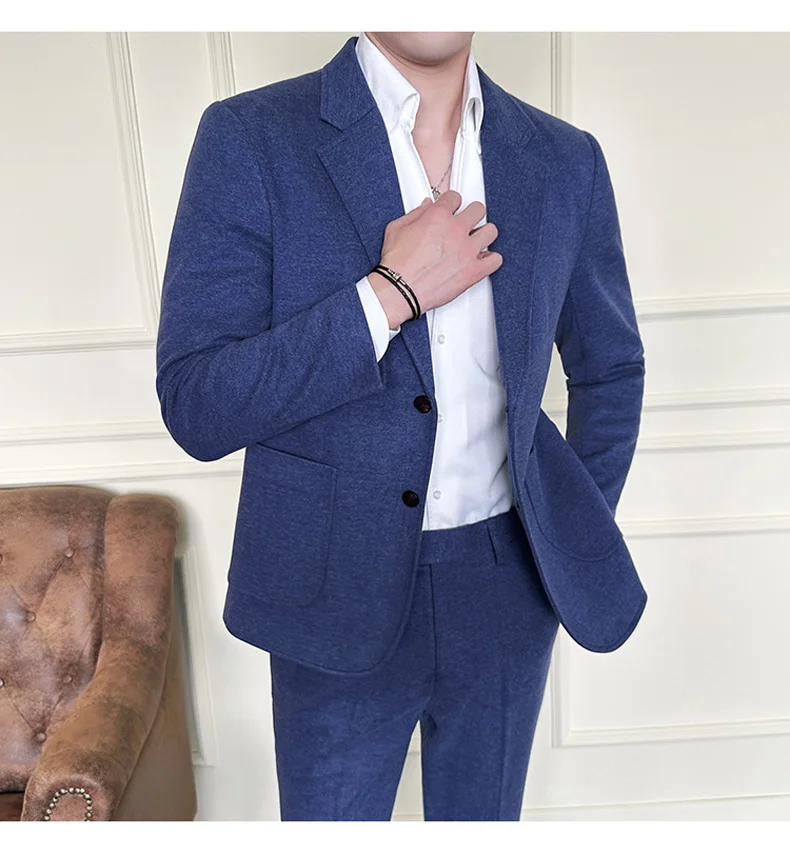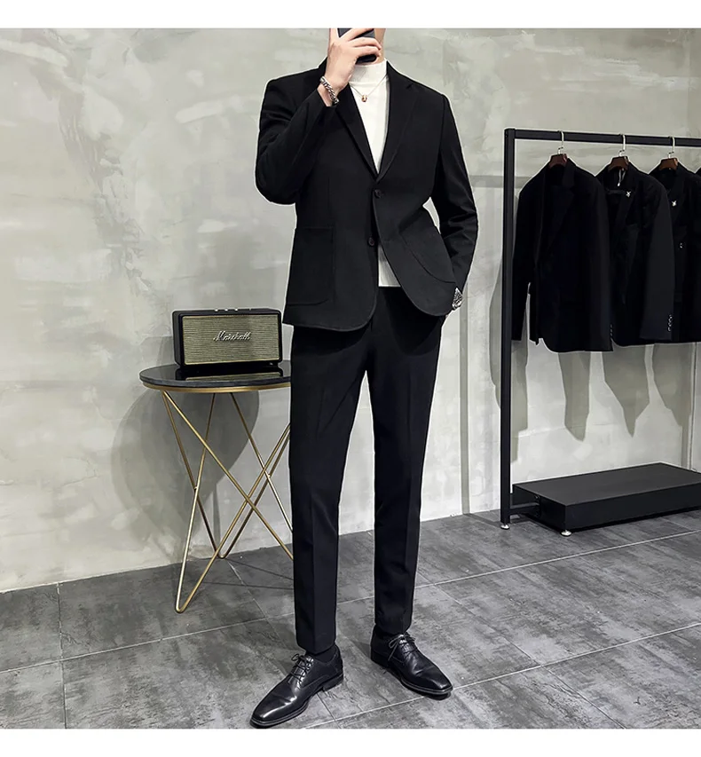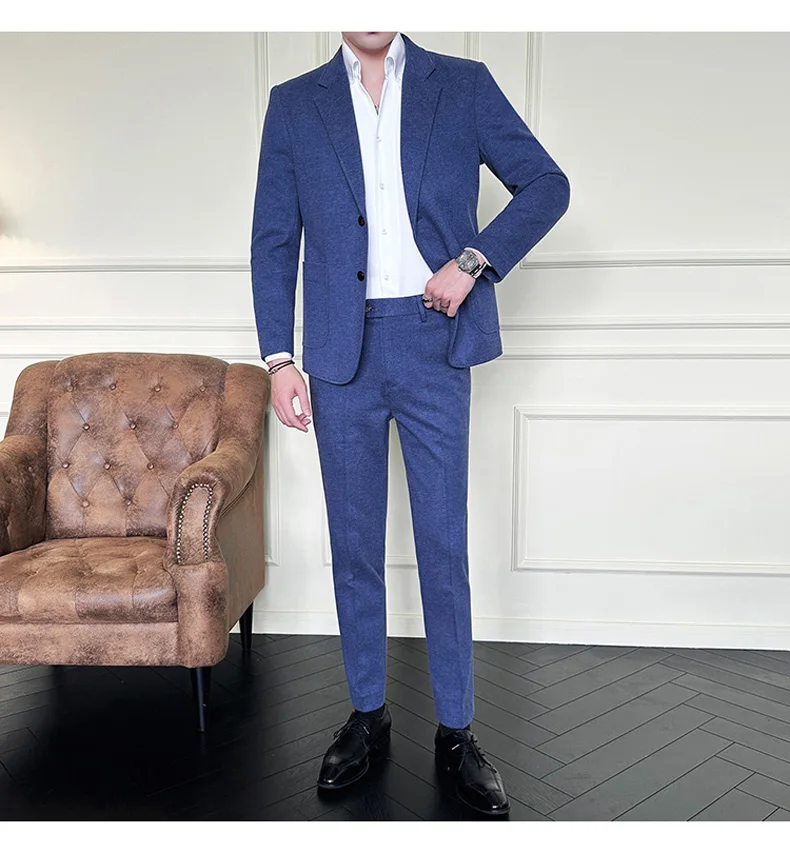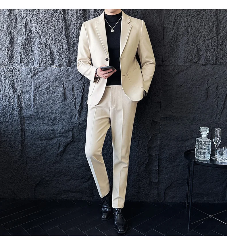 Business Casual Two Button Suit Men's Sets Solid Color Slim Fit Suit Blazer and Full-Length Pants Formal Two-Pieces Set Clothing