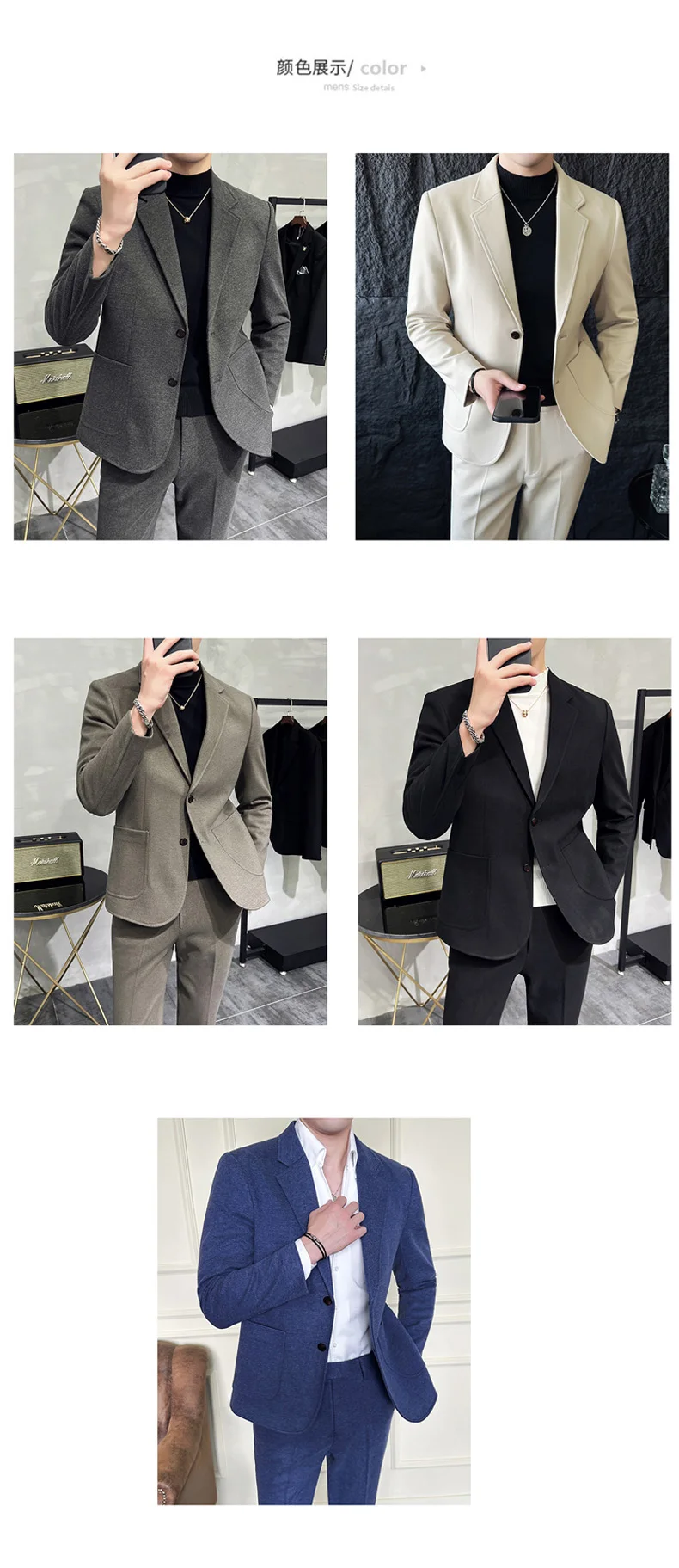 Business, Casual, Two, Button, Suit, Men's, Sets, Solid, Color, Slim, Fit , Blazer, and Full-Length ,Pants, Formal, Two-Pieces, Set, Clothing,