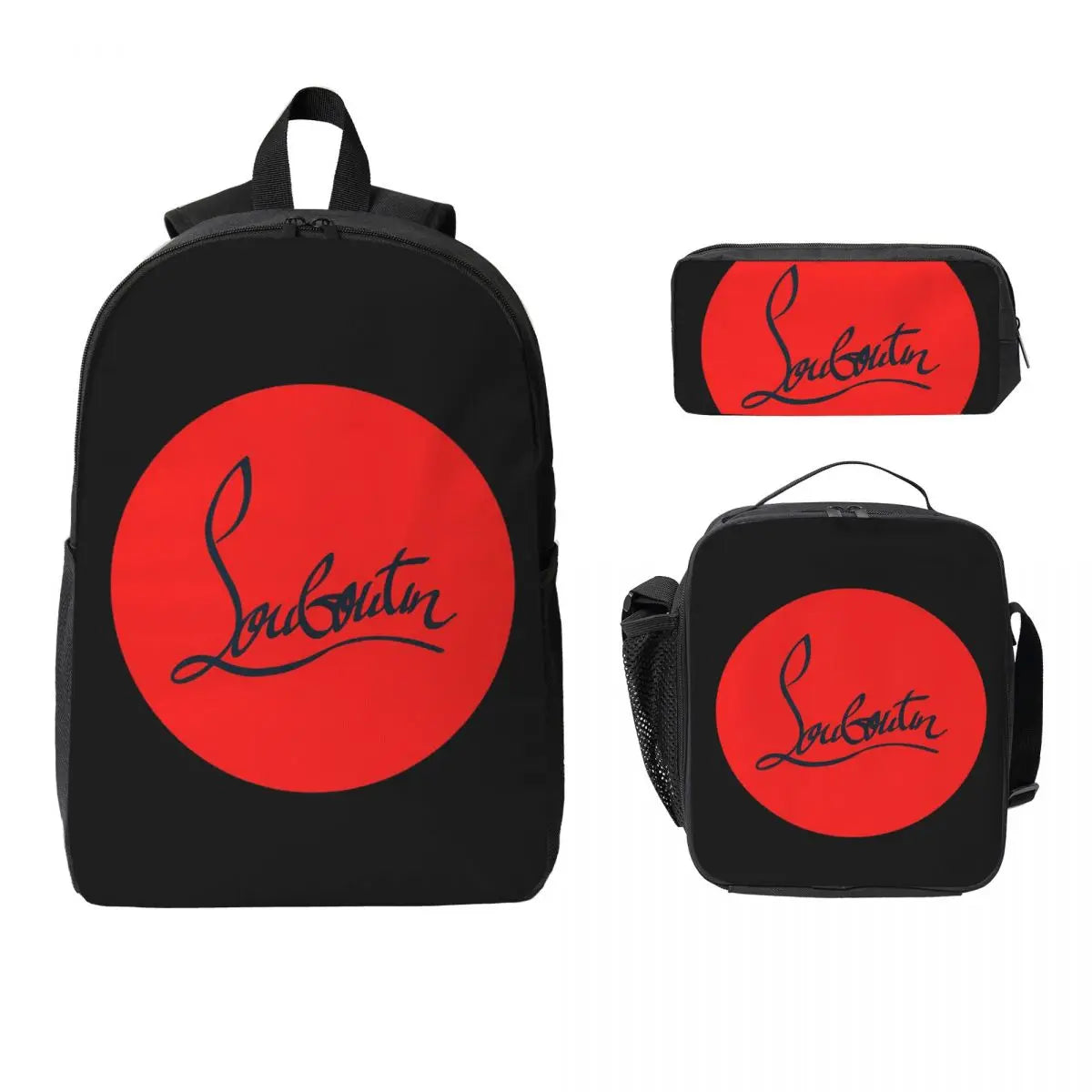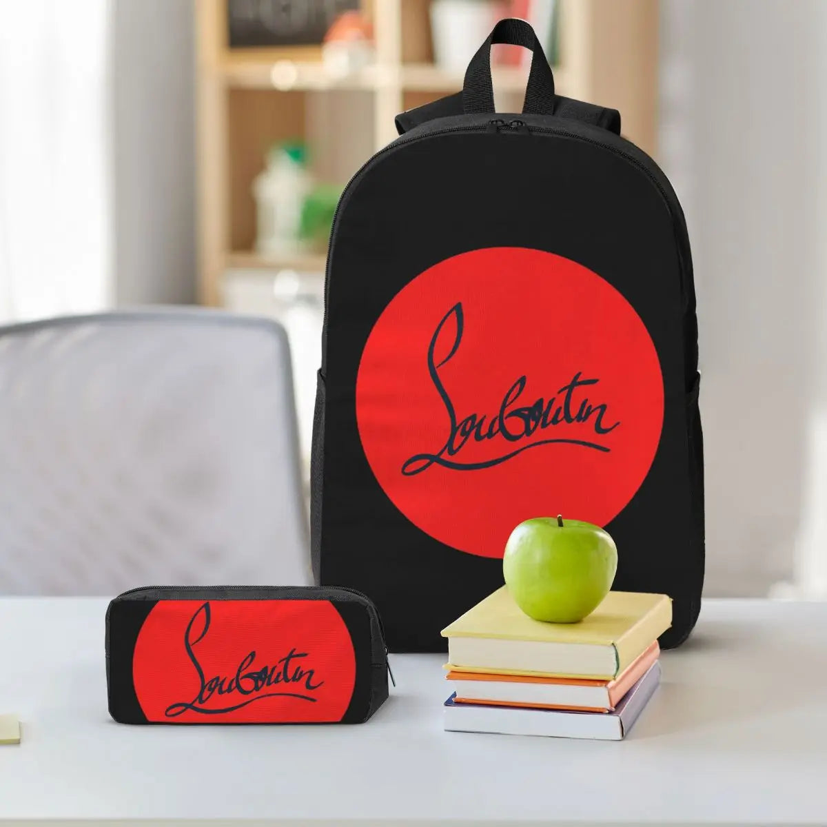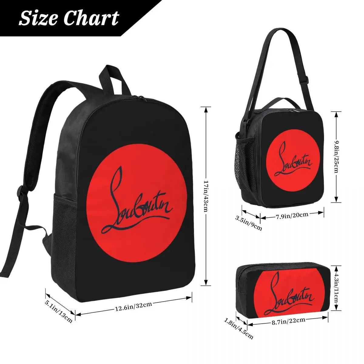 Christian Louboutin Inspired 3-Piece School Bag Set for Boys & Girls – Backpack + Insulated Lunch Bag + Pencil Case | Laptop Shoulder Bag & School BookBag Set