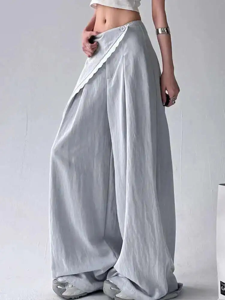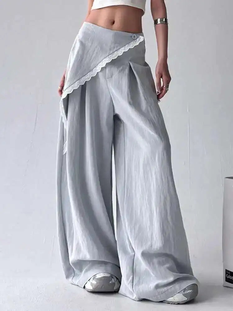 Step into the new season with confidence in these Blue Lace Spliced False 2-Piece High Waist Wide Leg Pants, designed to combine fashion-forward design with everyday comfort. The cleverly constructed "false 2-piece" look offers the appearance of a coordinated outfit while maintaining the ease of a single garment. Perfect for Spring and Autumn 2025, these trousers offer a modern, laid-back elegance that flatters every figure.