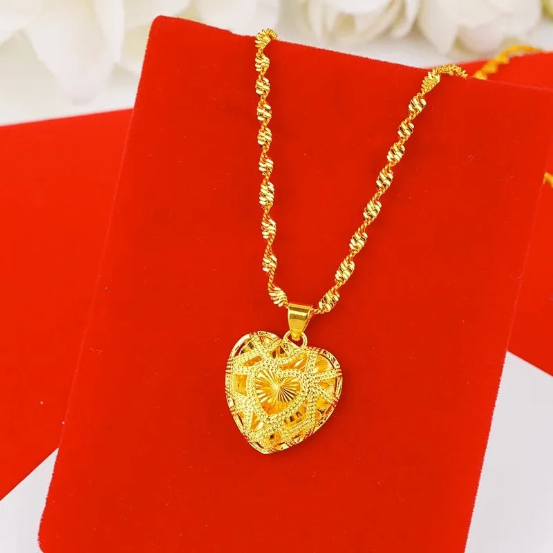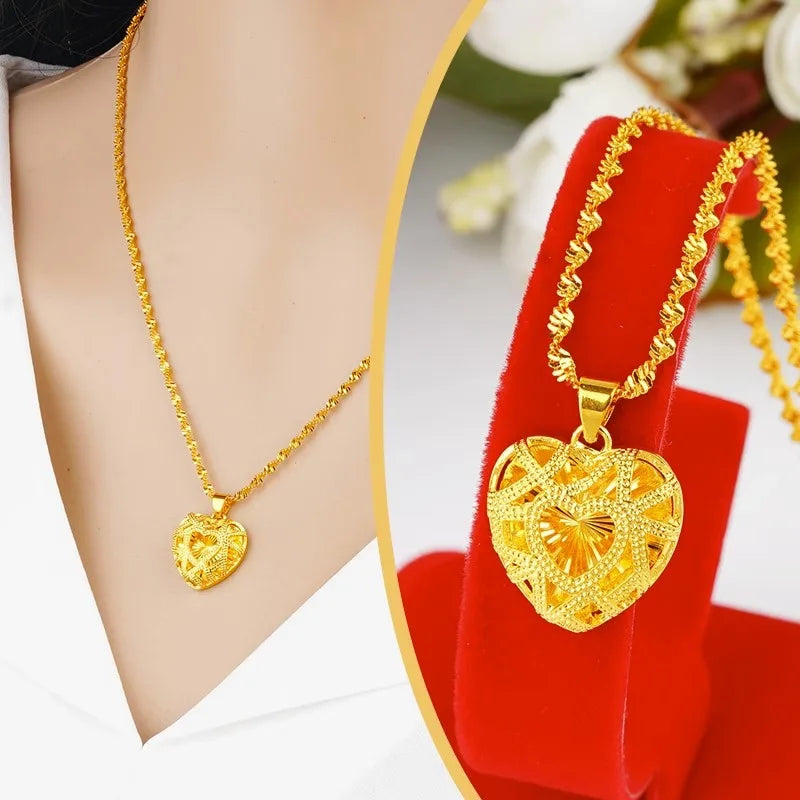 Discover luxury and symbolism with our 24K AU999 gold hollow heart-shaped pendant necklace, featuring a delicately carved double butterfly design—perfect for meaningful gifting and everyday elegance.