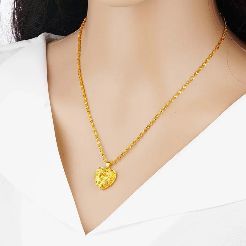 Top 5 24K AU999 Gold Heart Necklaces for Women | Double Butterfly Pendant