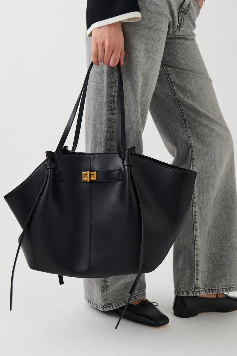 Large Capacity Trapeze Shoulder Bag for Women – Designer PU Leather Tote with Metal Lock | High-Quality