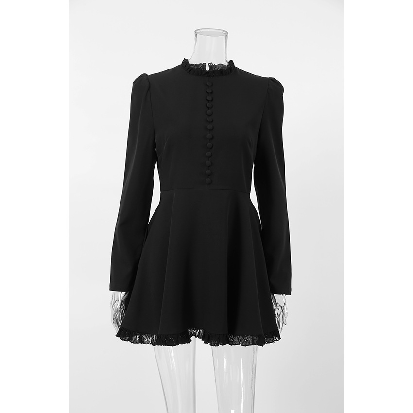 Long sleeved dress design sense small black skirt A-line skirt for women