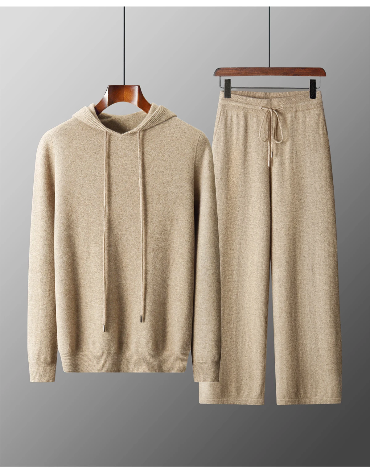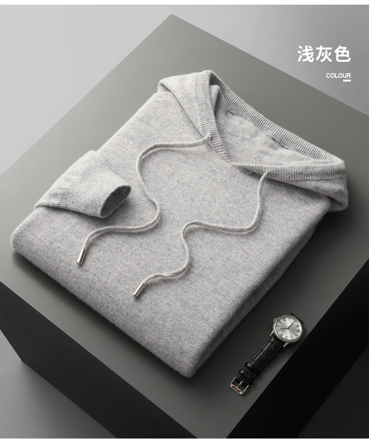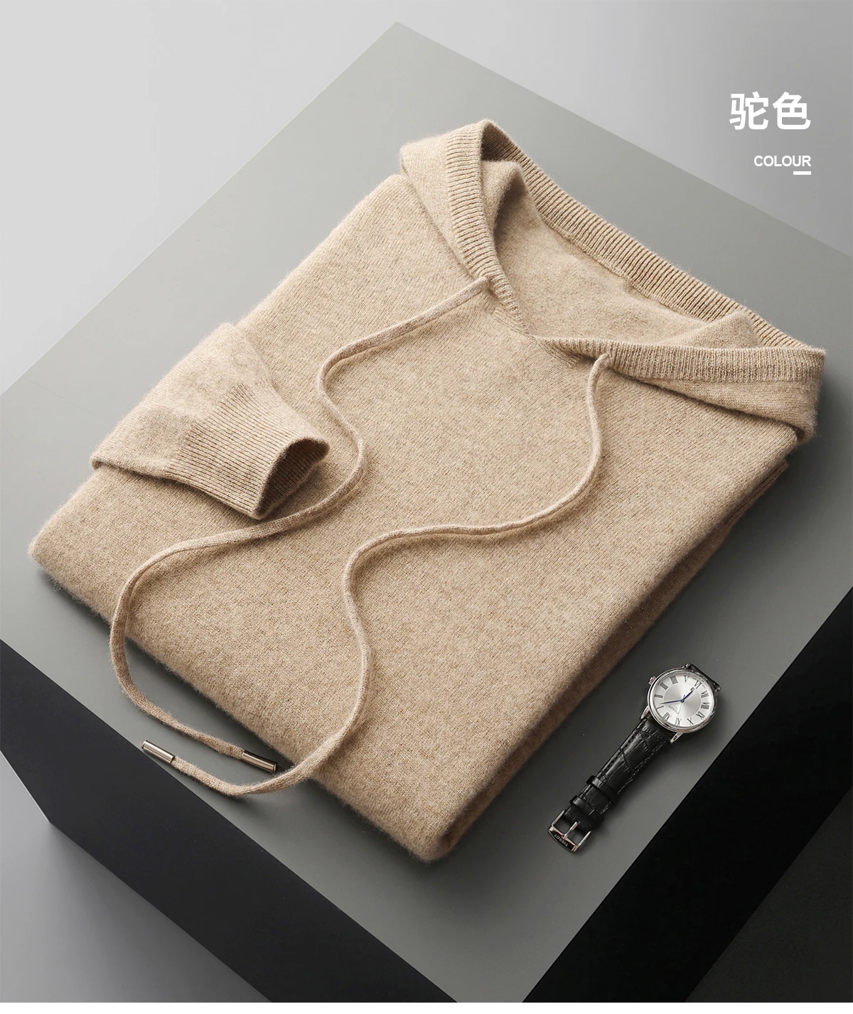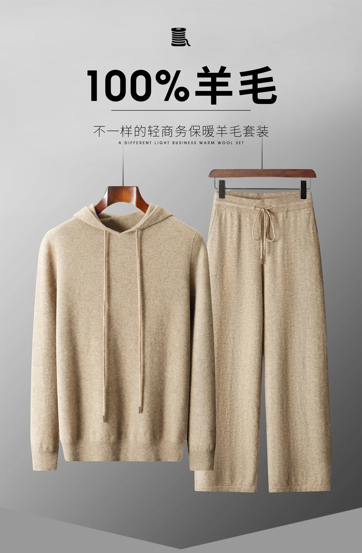 Men's 100% Merino Wool Knit Hooded Pullover & Jogger Set – Ultra-Soft Two-Piece Loungewear for Fall & Winter