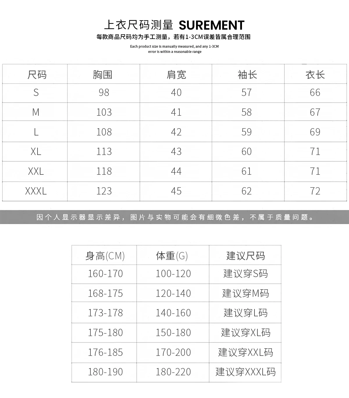 XL: bust: 110 cm, length: 70 cm, sleeve: 60 cm, weight: 75-90kg