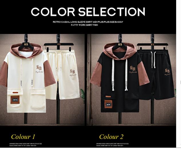 Upgrade your wardrobe with our breathable 2-piece cotton set for men. Features a hooded short-sleeve top and comfy drawstring pants. Perfect for streetwear style, travel, and casual days.