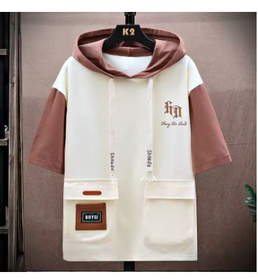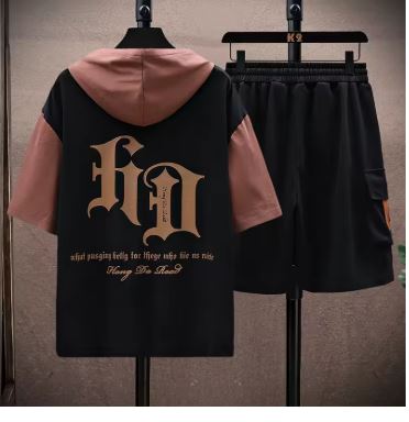 The short-sleeved hooded top adds an urban edge, giving your outfit that sporty, streetwear-inspired vibe, perfect for men who want comfort without sacrificing style. It’s the perfect grab-and-go outfit for summer days or cool evenings.