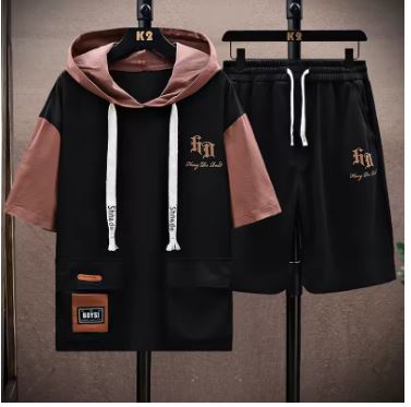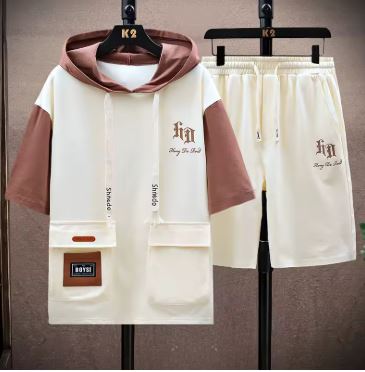 New Hooded Casual Two-Piece Short-Sleeved Cotton Men