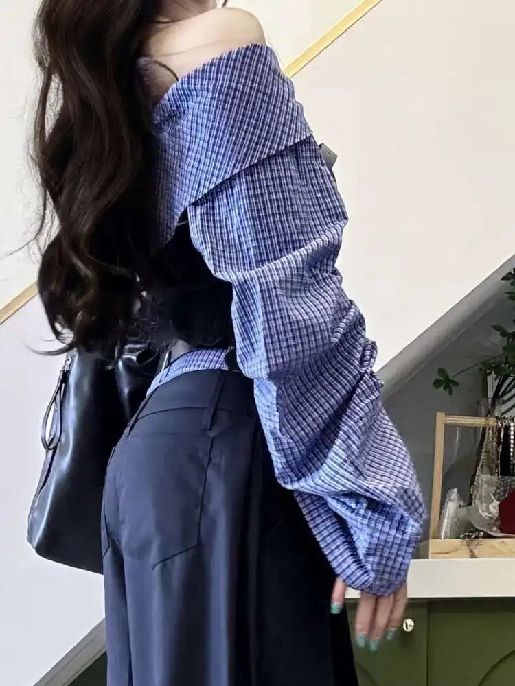 2025 Off-Shoulder Slim Fit Shirt – Large Size | 3+ Contrast Color StylesStep into spring with style in this 2025 off-shoulder large size slim fit shirt for women. Flattering, fashionable, and finished with bold contrast colors—perfect for everyday chic