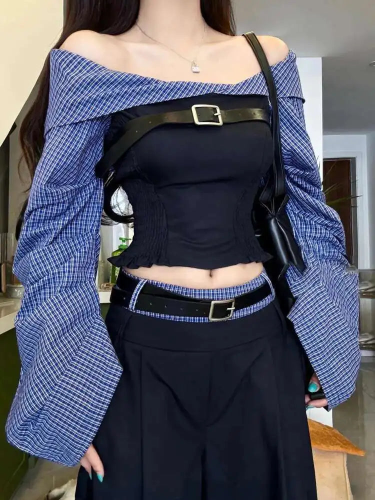 Introducing the 2025 Spring Off-Shoulder Large Size Slim Fit Shirt—where feminine charm meets flattering structure. Designed with a sultry off-shoulder neckline and slimming silhouette, this contrast color pullover top celebrates every curve while offering breathability and all-day comfort. Whether you're headed to brunch or a breezy spring stroll, this shirt is your go-to for an effortlessly put-together look. Be bold, be confident, and own the season.