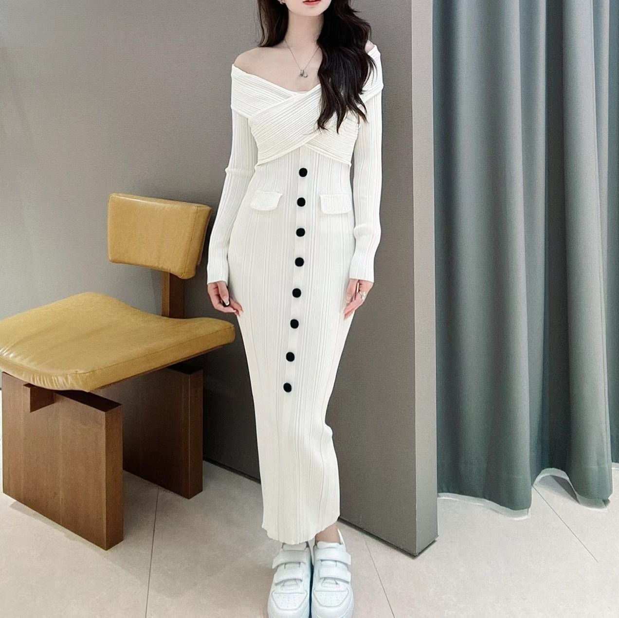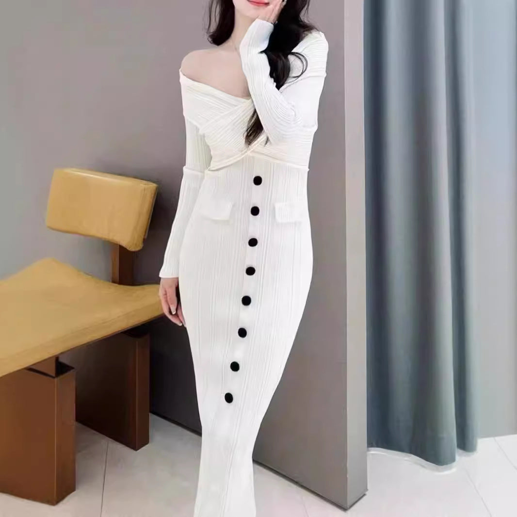 Make a bold yet refined entrance with the One-shoulder Sexy Slim Knitted Dress, designed to elevate your evening look with a seamless blend of sensuality and sophistication. The asymmetrical neckline drapes elegantly across the collarbone, drawing attention to your silhouette in all the right ways. Whether you’re stepping into a gala, an upscale dinner, or a rooftop celebration, this dress makes a lasting impression with its flattering form-fitting cut and dramatic hip-hugging long skirt. It’s more than a dress—it’s a statement of confidence.