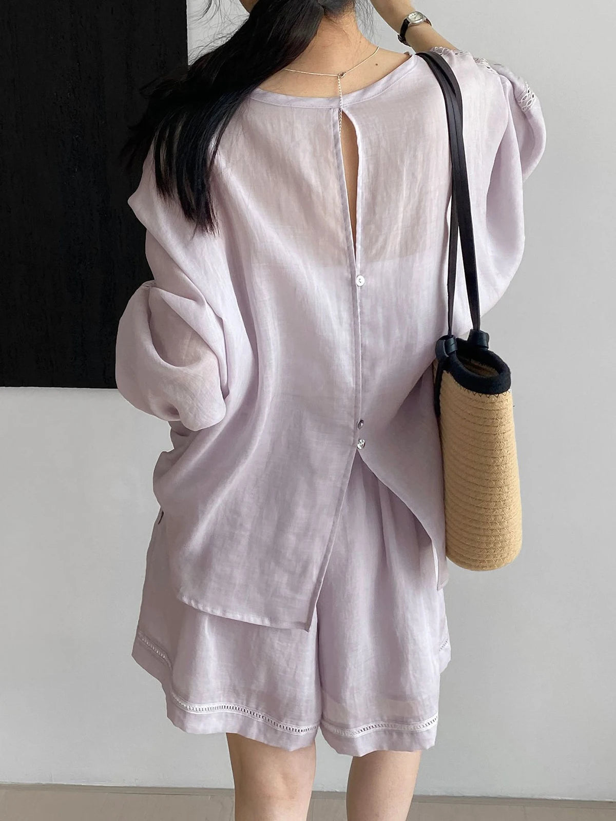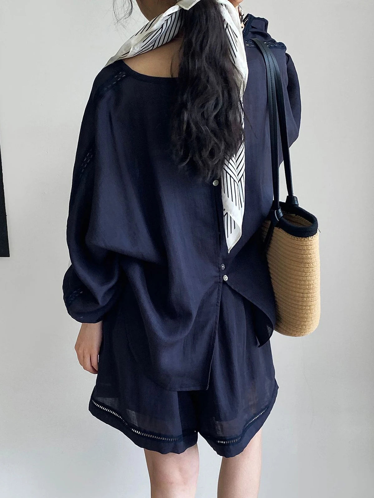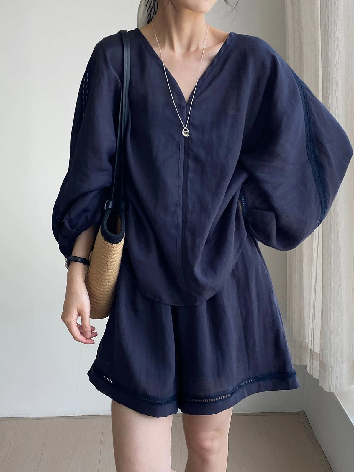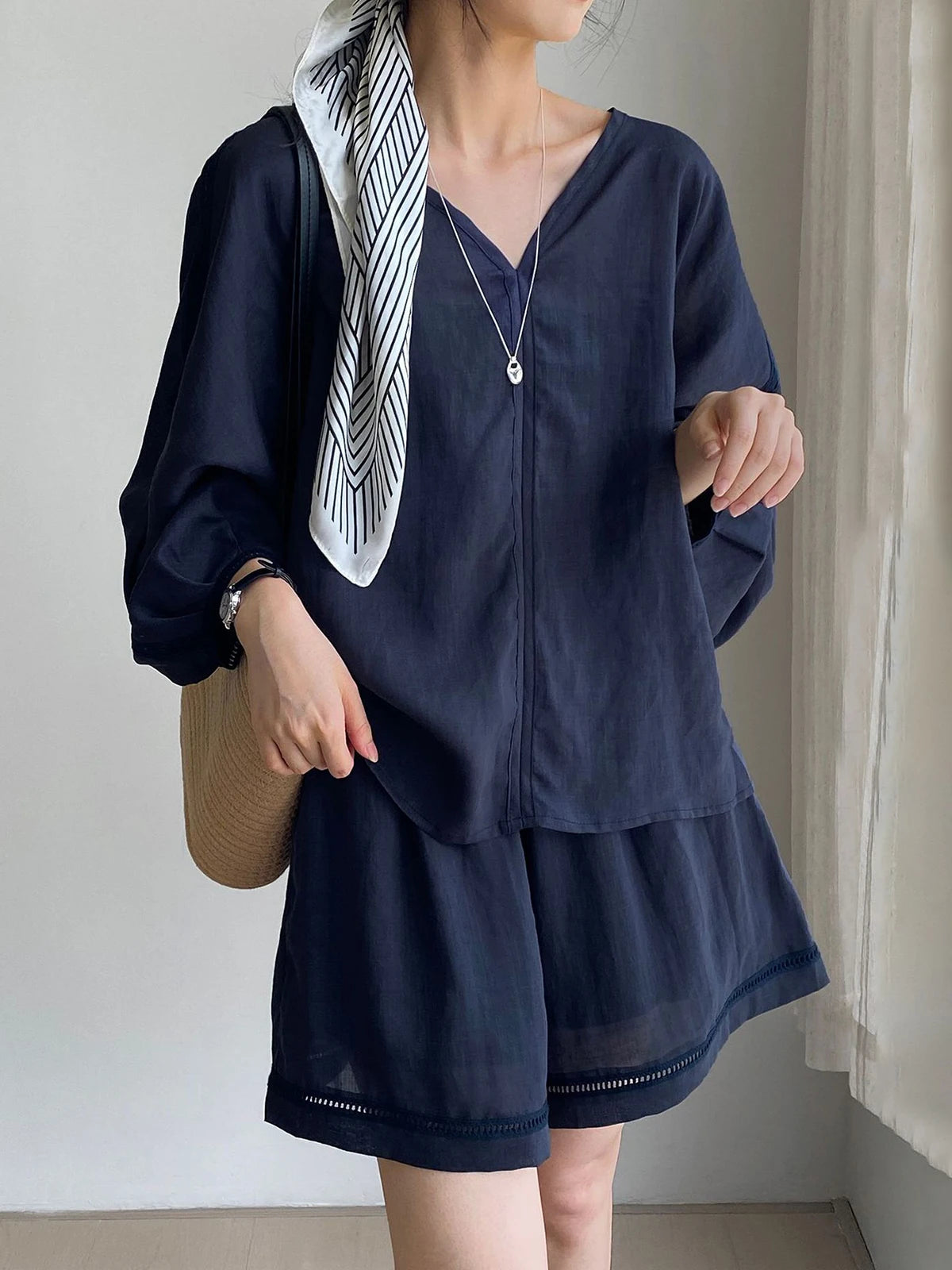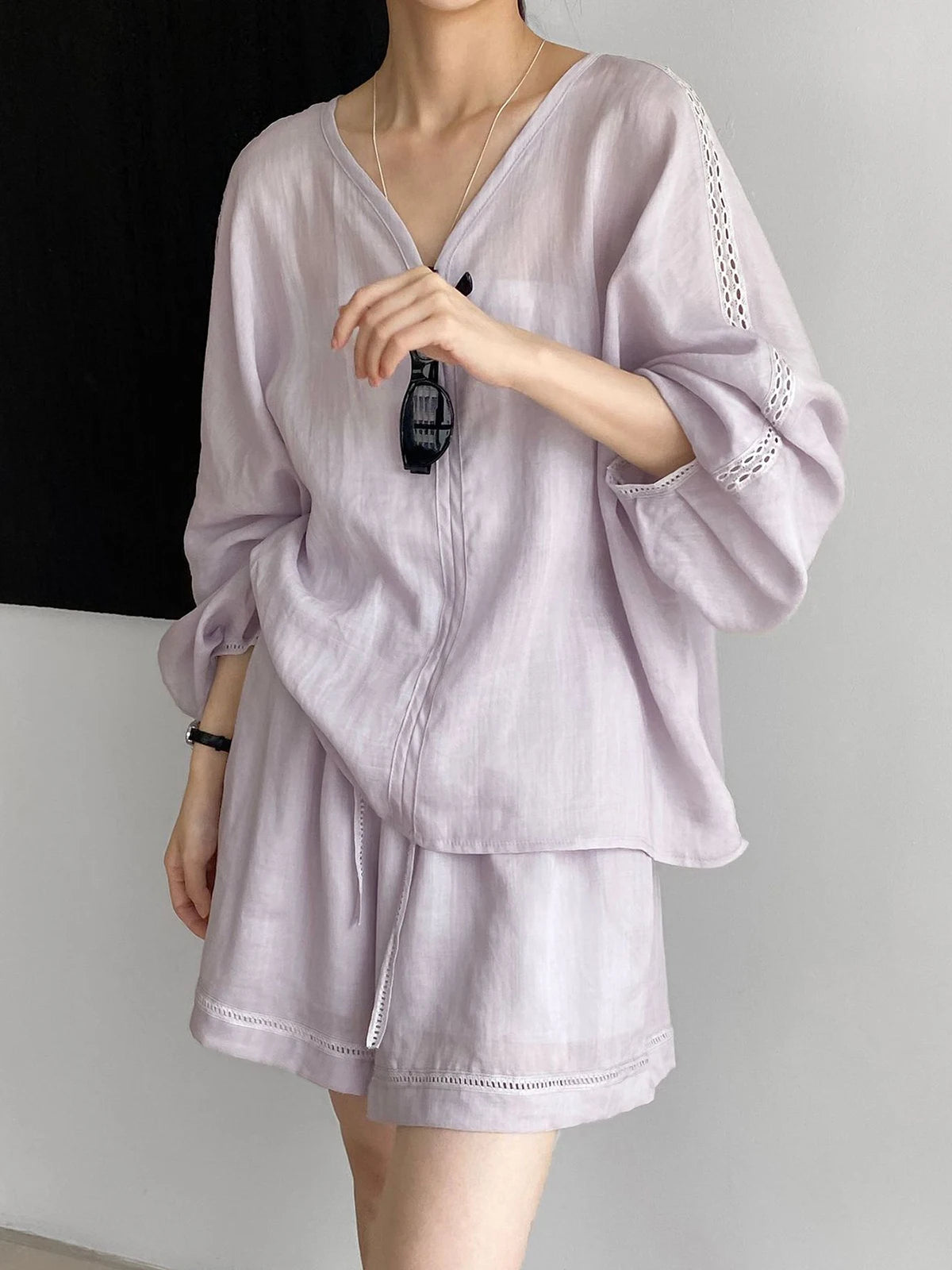 Purple Wide Leg Shorts Two Piece Suit New V-neck Long Sleeve Sunscreen Shirt Women Fashion Tide Spring Summer 2025 Step into the season in style with our Purple 2-Piece Suit featuring a V-neck long sleeve sunscreen shirt and wide leg shorts. A trendy, breathable outfit perfect for Spring Summer 2025 fashion. Make a bold fashion statement this season with our Purple Women's 2-Piece Wide Leg Shorts Suit – a chic and modern outfit designed for warm-weather style with a fashion-forward edge. Ideal for Spring and Summer 2025 , this set includes a V-neck long sleeve UV protection shirt and flowy wide leg shorts , blending comfort, coverage, and trend-led design. The sunscreen fabric offers UV protection, making it perfect for outdoor wear, while the vibrant purple hue brings a pop of color to your summer wardrobe. The loose, wide-leg fit ensures breathability and comfort, and the elegant V-neck top adds a flattering, feminine touch.