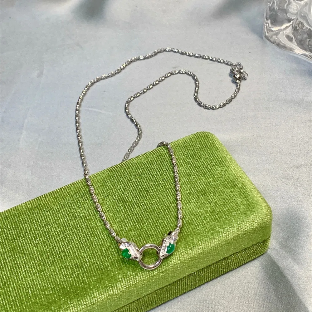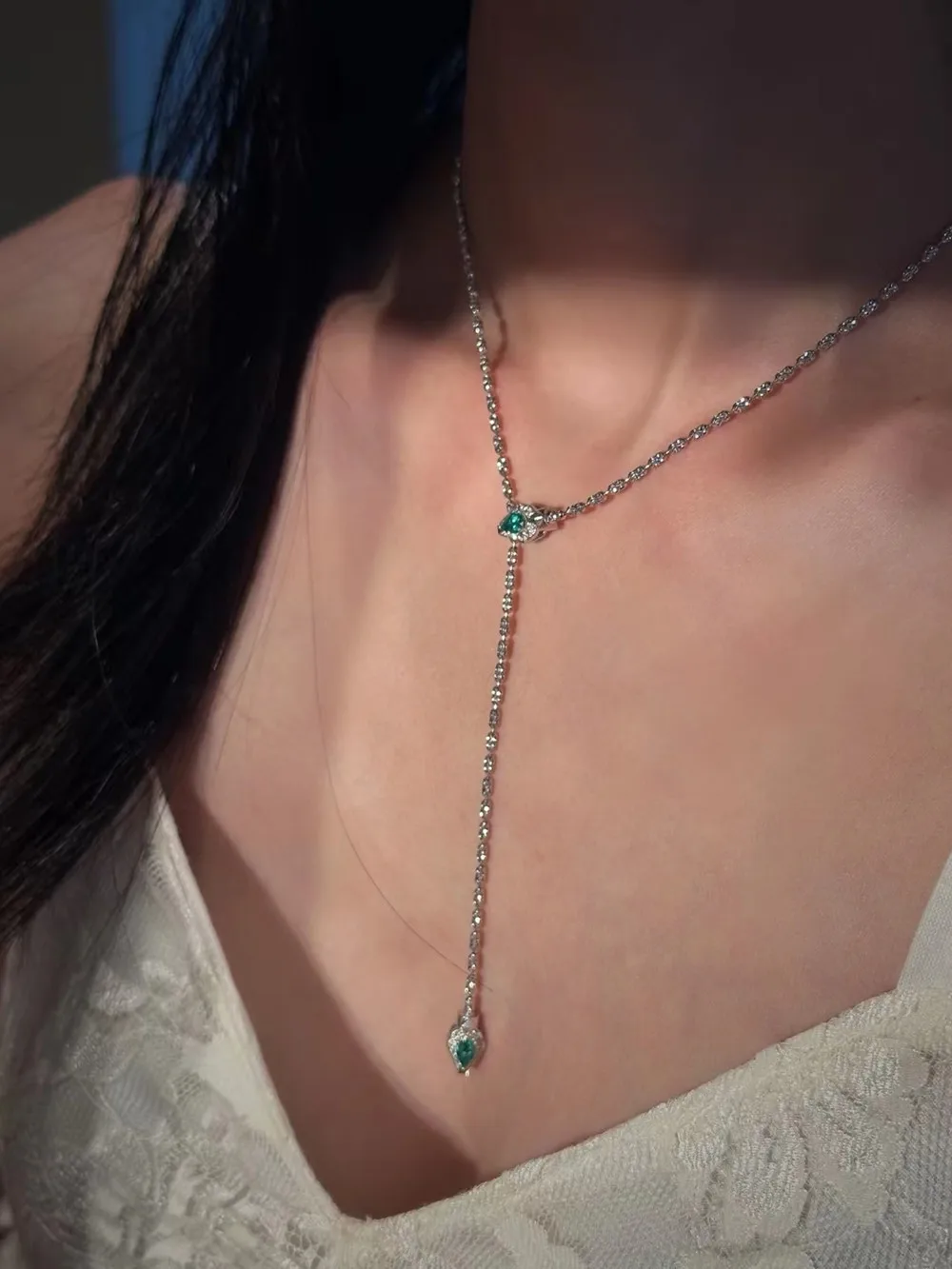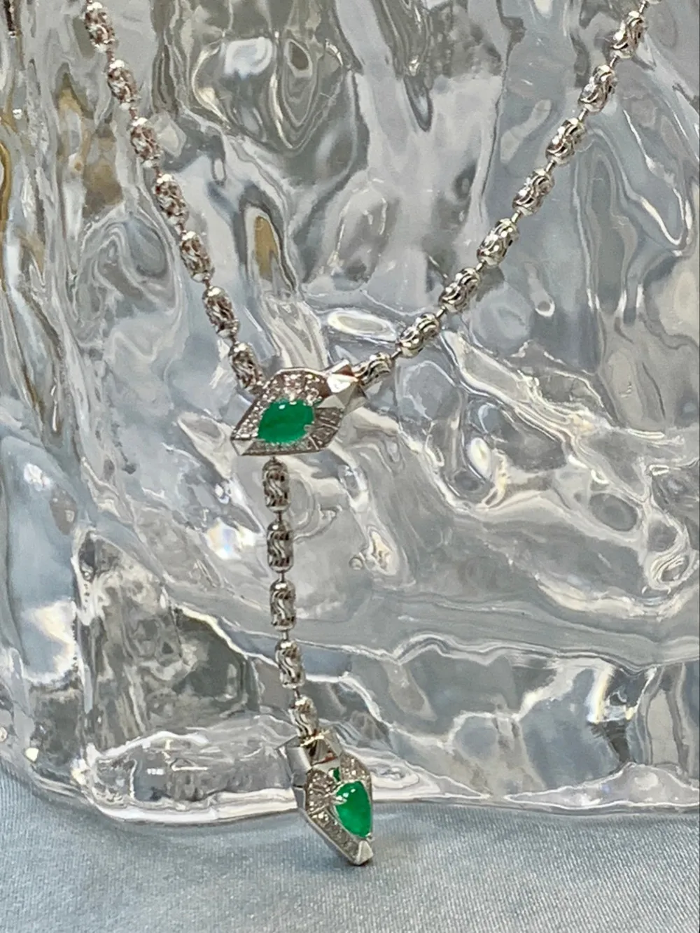 Shelly Real 18K White Gold Snake Necklace w/ Diamonds & Emeralds | AU750