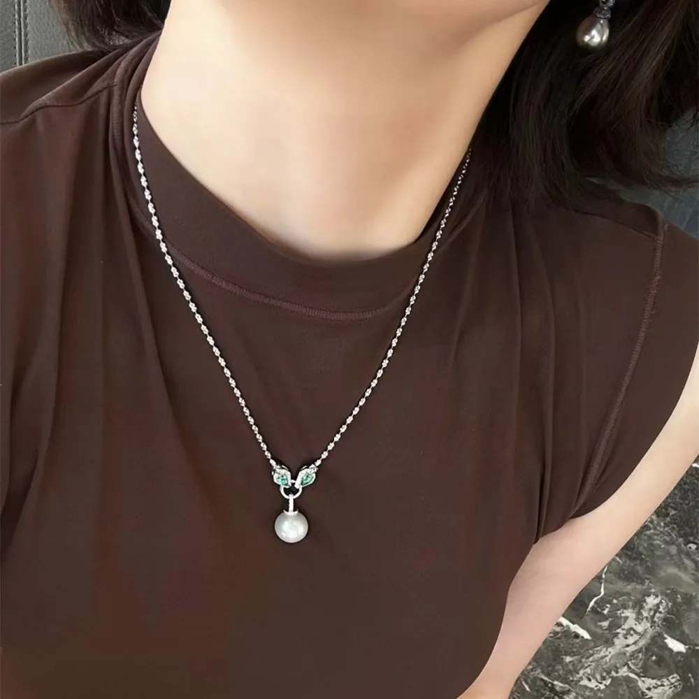 Shelly Real 18K Solid White Gold AU750 Jewelry Shinny Beads Chain Natural Diamonds Water Drop Emeralds Snake Pendant Necklaces