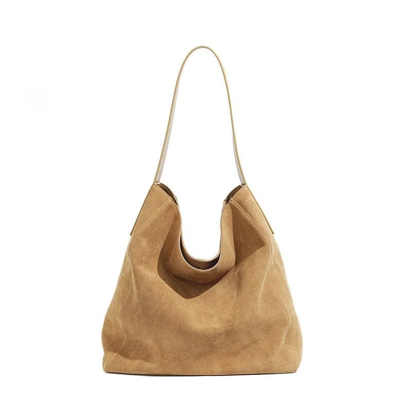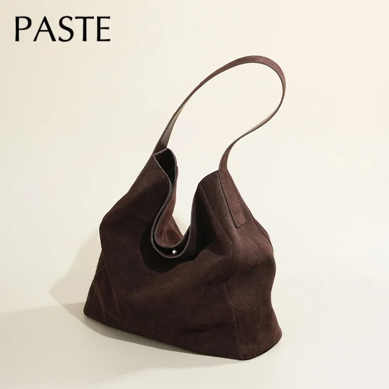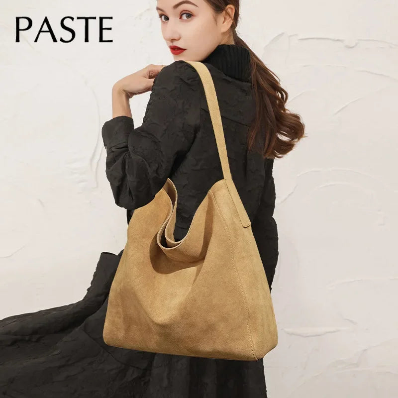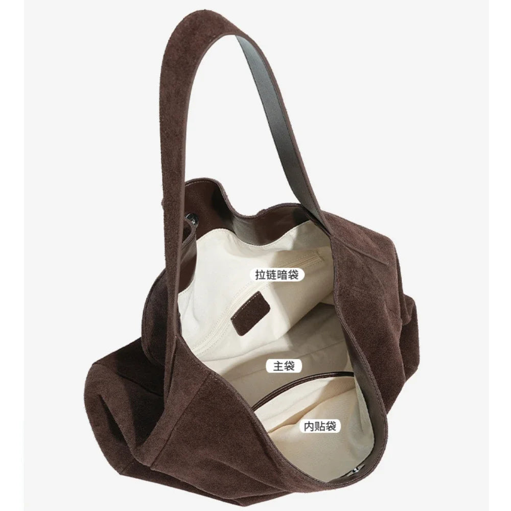 定制秋冬简约麂皮绒面腋下托特包 大容量头层磨砂牛皮手提单肩包