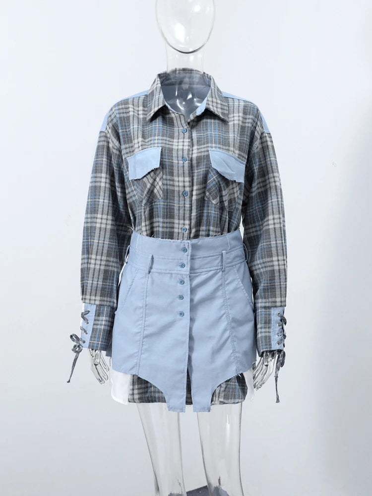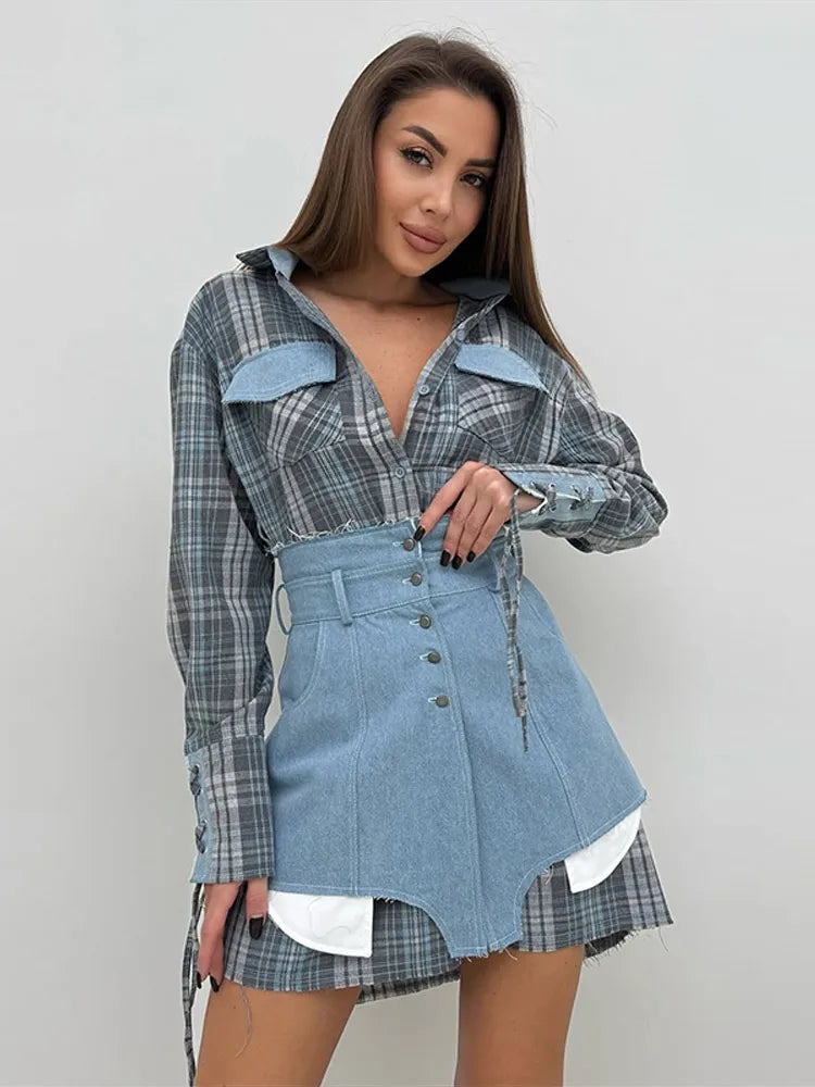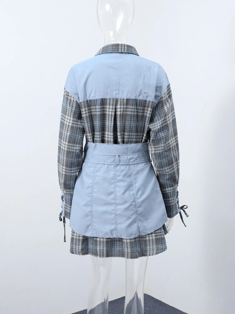 Trendy, Women's, Shirt, with Denim-Like Belted, Waist, Skirt, Set, Chic, Office Casual Outfit,