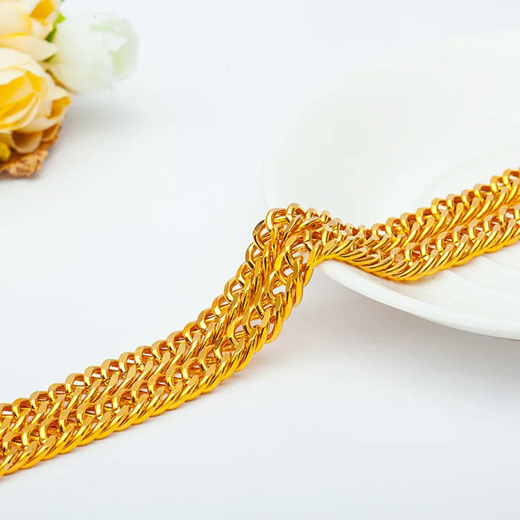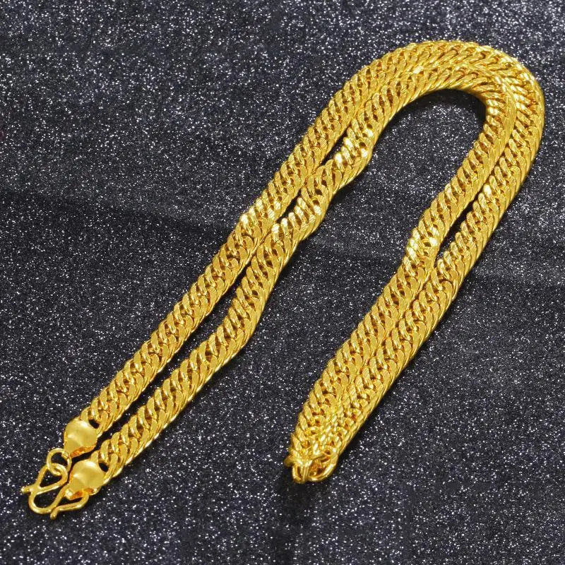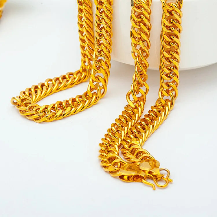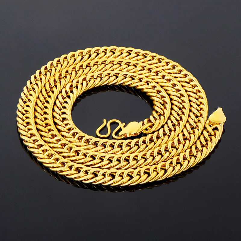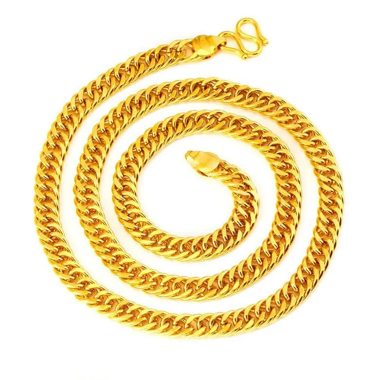 Wide 8mm Gloss Double Buckle Boss Necklace Luxury 24K 9999 Pure Gold, real gold, Atmospheric Men