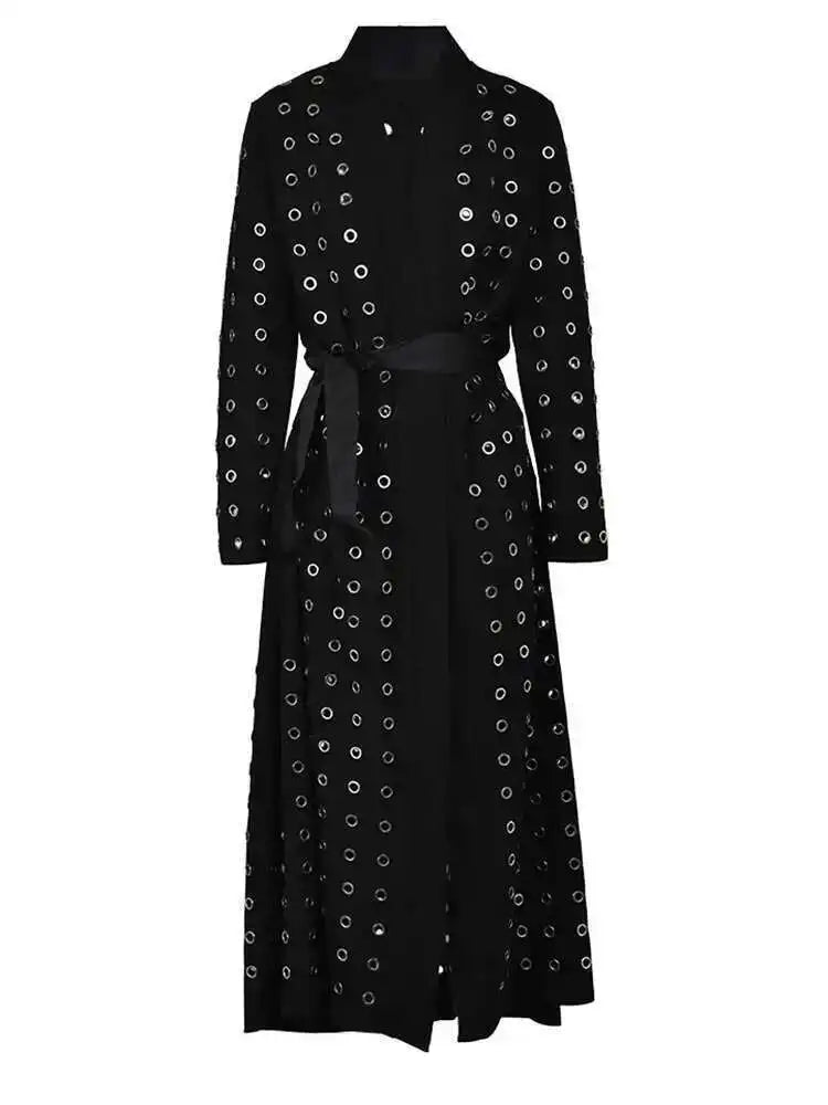 Women’s Black Hollow Out Long Sleeve Trench Jacket 2025