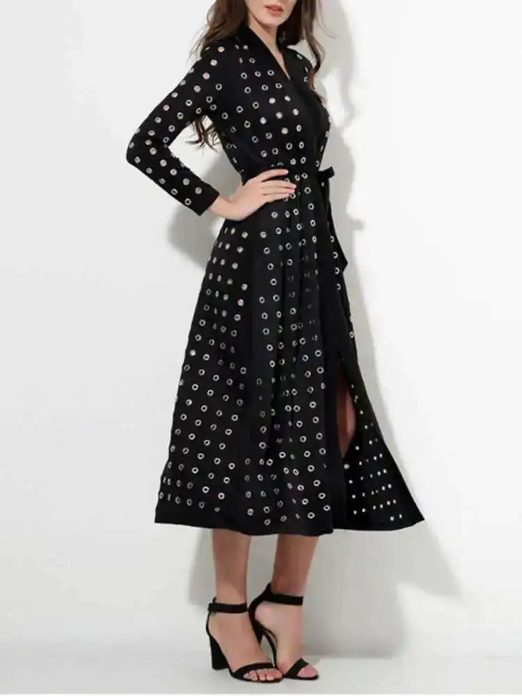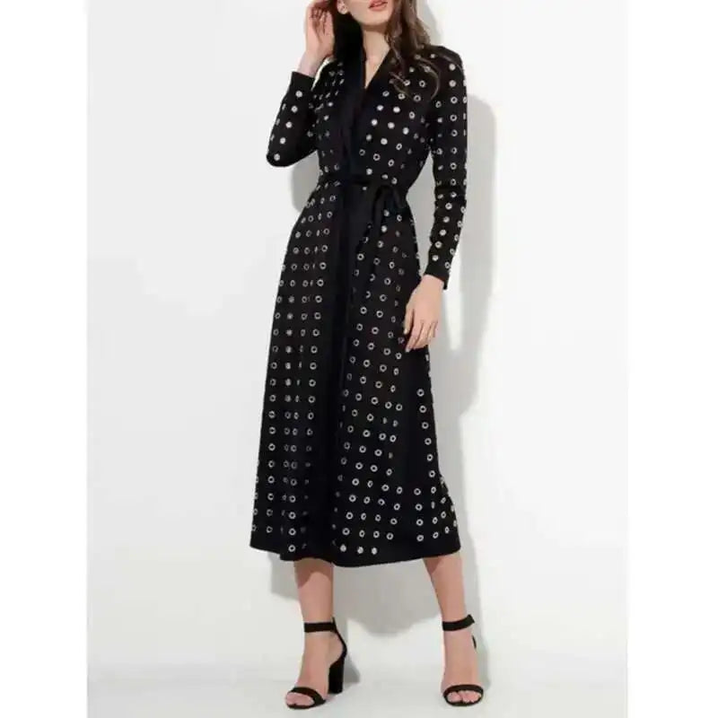 Women's Black Hollow Out Long Sleeve Casual Trench Coat – Loose Fit Lapel Windbreaker Jacket for Spring Autumn 2025 Fashion