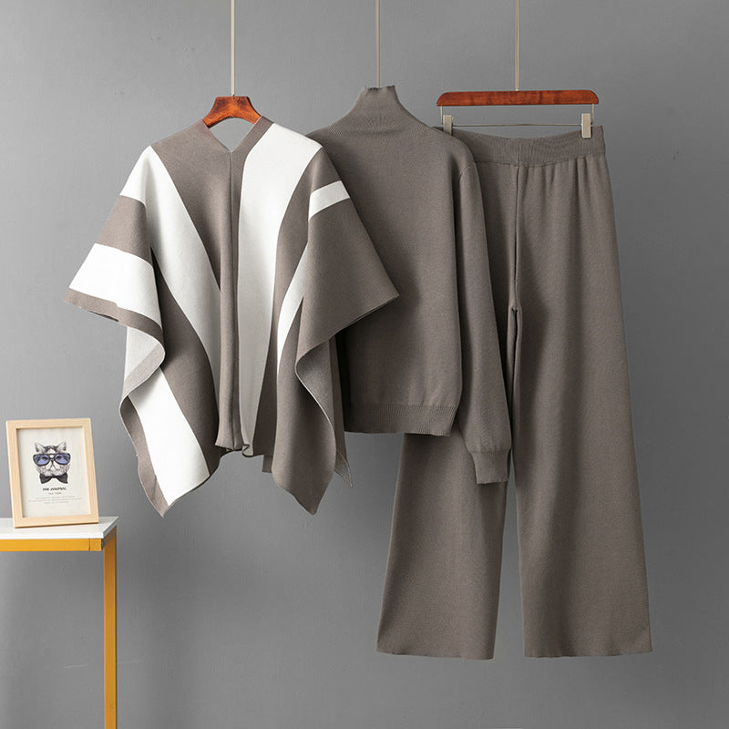 Women’s Shawl, Sweater & Wide Leg Pants 3-Piece Set