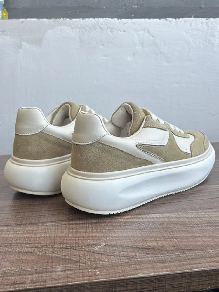 Discover our handmade, genuine leather Unisex sneakers designed for style and comfort. Elevate your look with these round-toe platform shoes for casual outings.