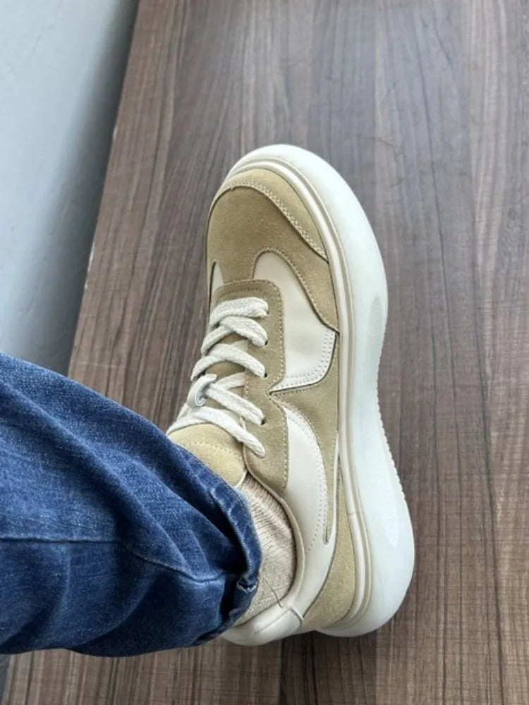 Youth, Trend, Solid, Color, Round, Toe, Platform, Unisex, Sneaker,s Handmade, Genuine, Leather, Height, Increase, Mid, Heel, Lace-Up, Casual, Shoes,